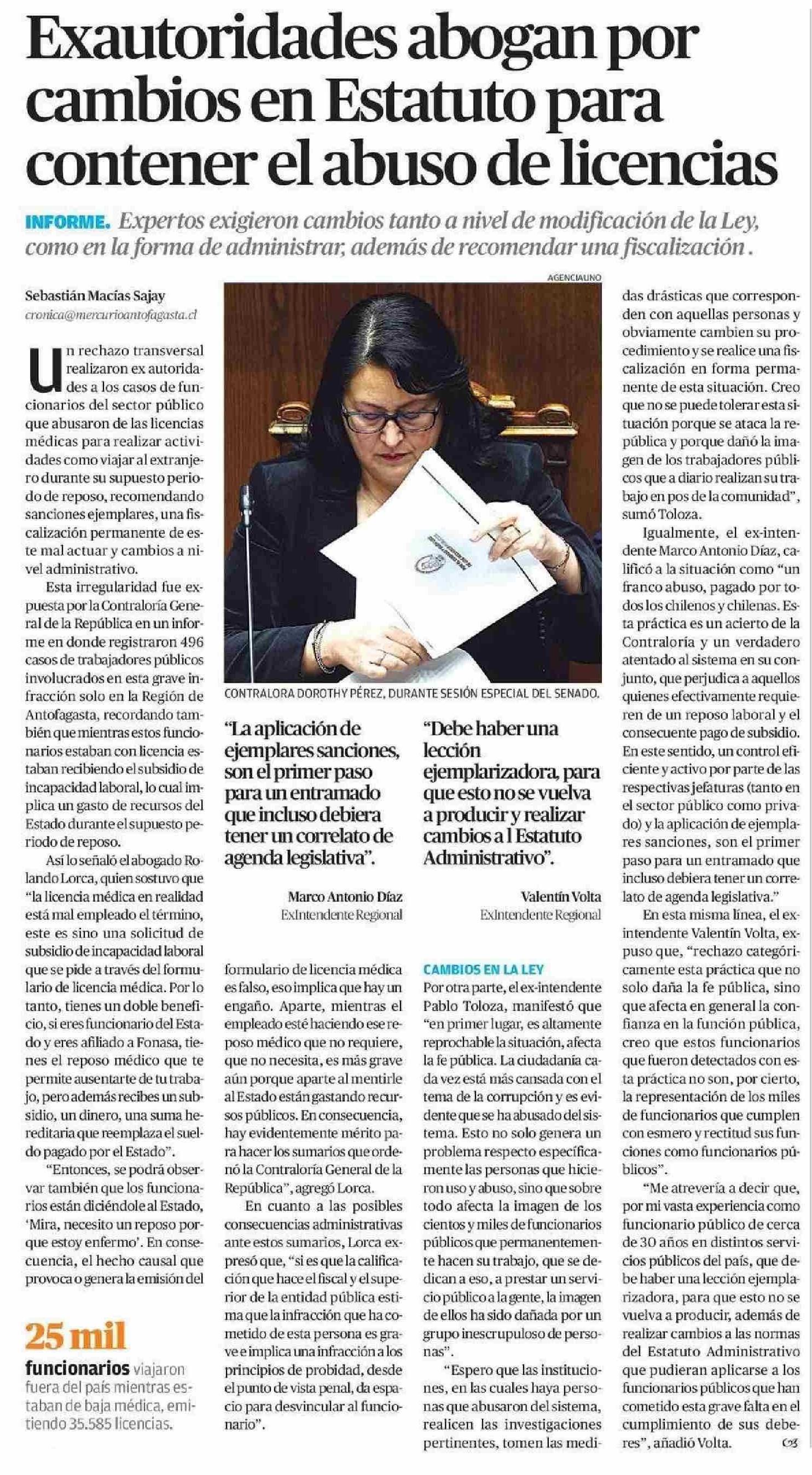 Exautoridades abogan por cambios en Estatuto para contener el abuso de licencias 28-05-2025 El Mercurio de Antofagasta |