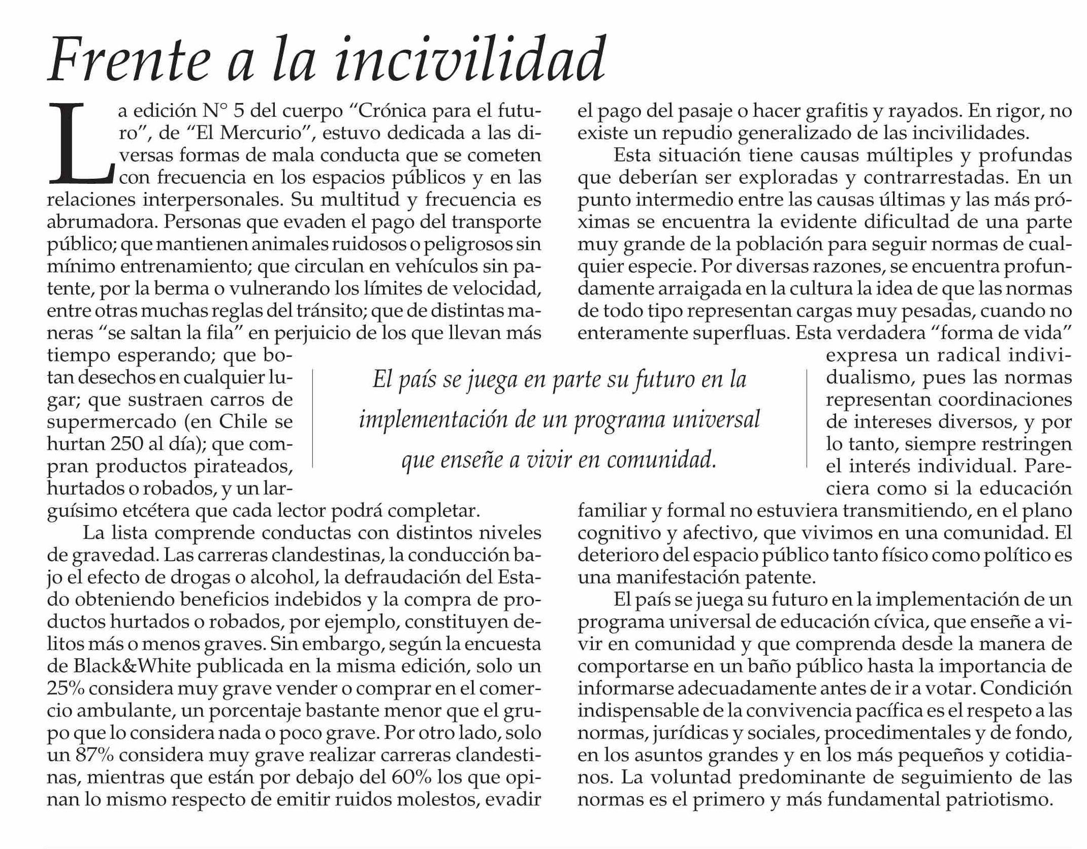 EDITORIAL: Frente a la incivilidad 22-06-2025 El Mercurio |