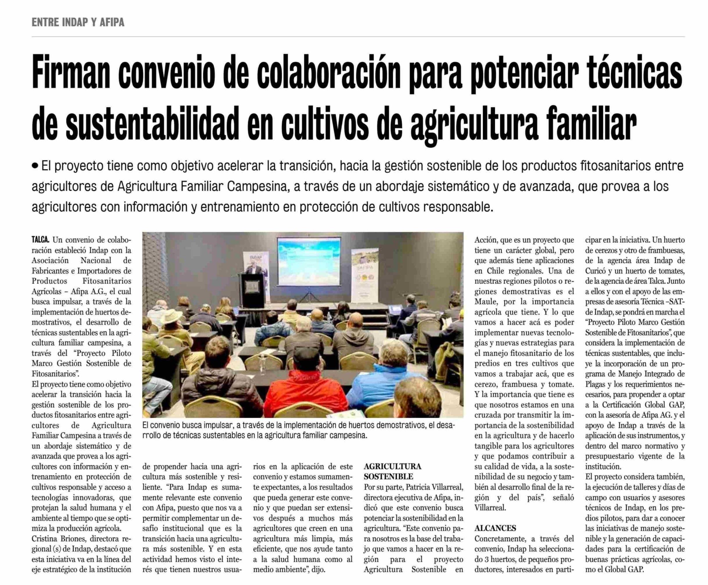 Firman convenio de colaboración para potenciar técnicas de sustentabilidad en cultivos de agricultura familiar 14-06-2025 La Prensa de Curicó |