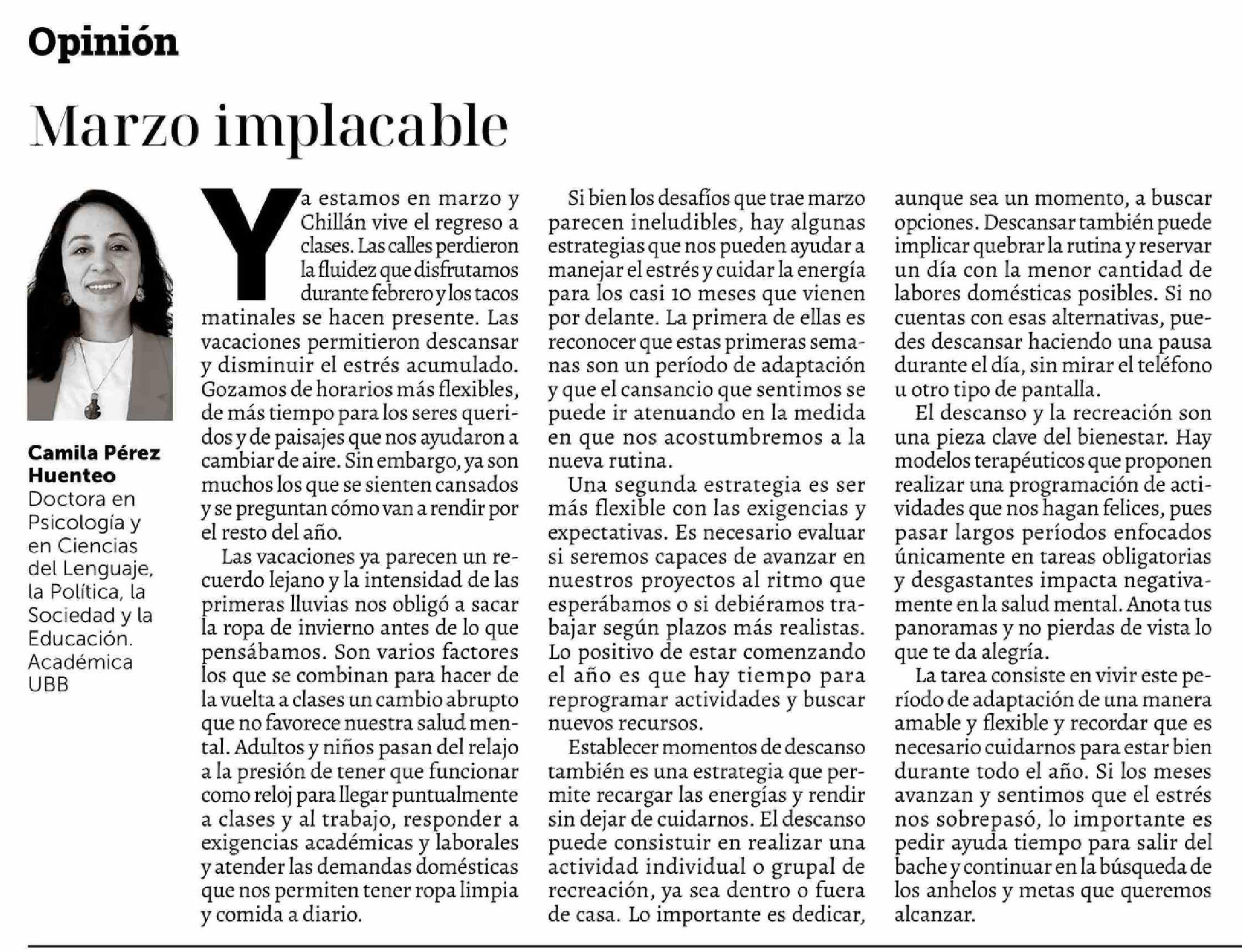 Fecha: 26-03-2026 Sector: Columnas de Opinión Región: Región del Ñuble