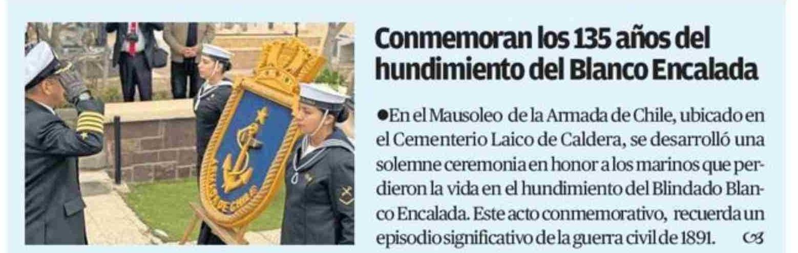 Conmemoran los 135 años del hundimiento del Blanco Encalada 24-04-2026 El Diario de Atacama |