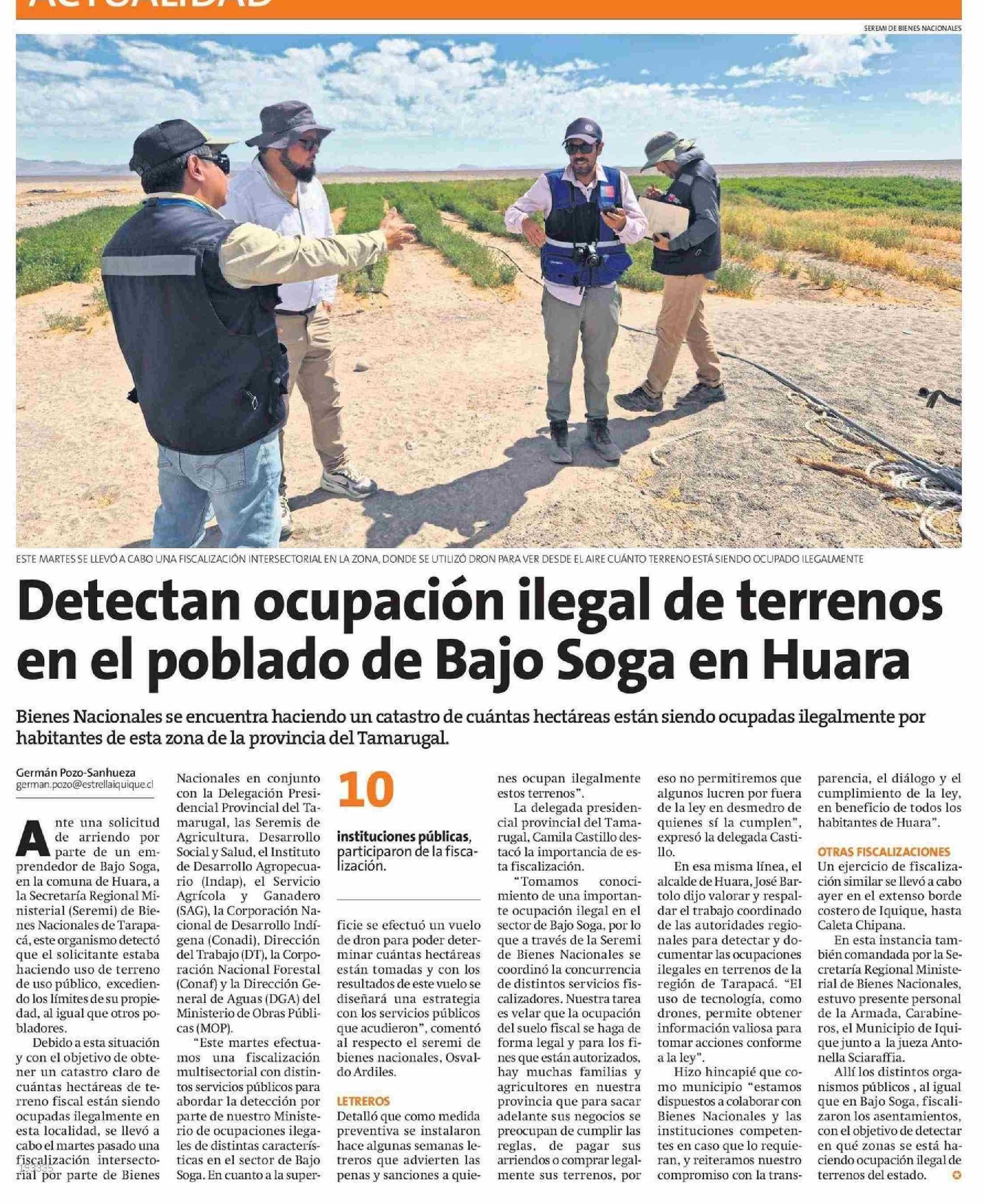 Detectan ocupación ilegal de terrenos en el poblado de Bajo Soga en Huara 24-04-2025 La Estrella de Iquique |