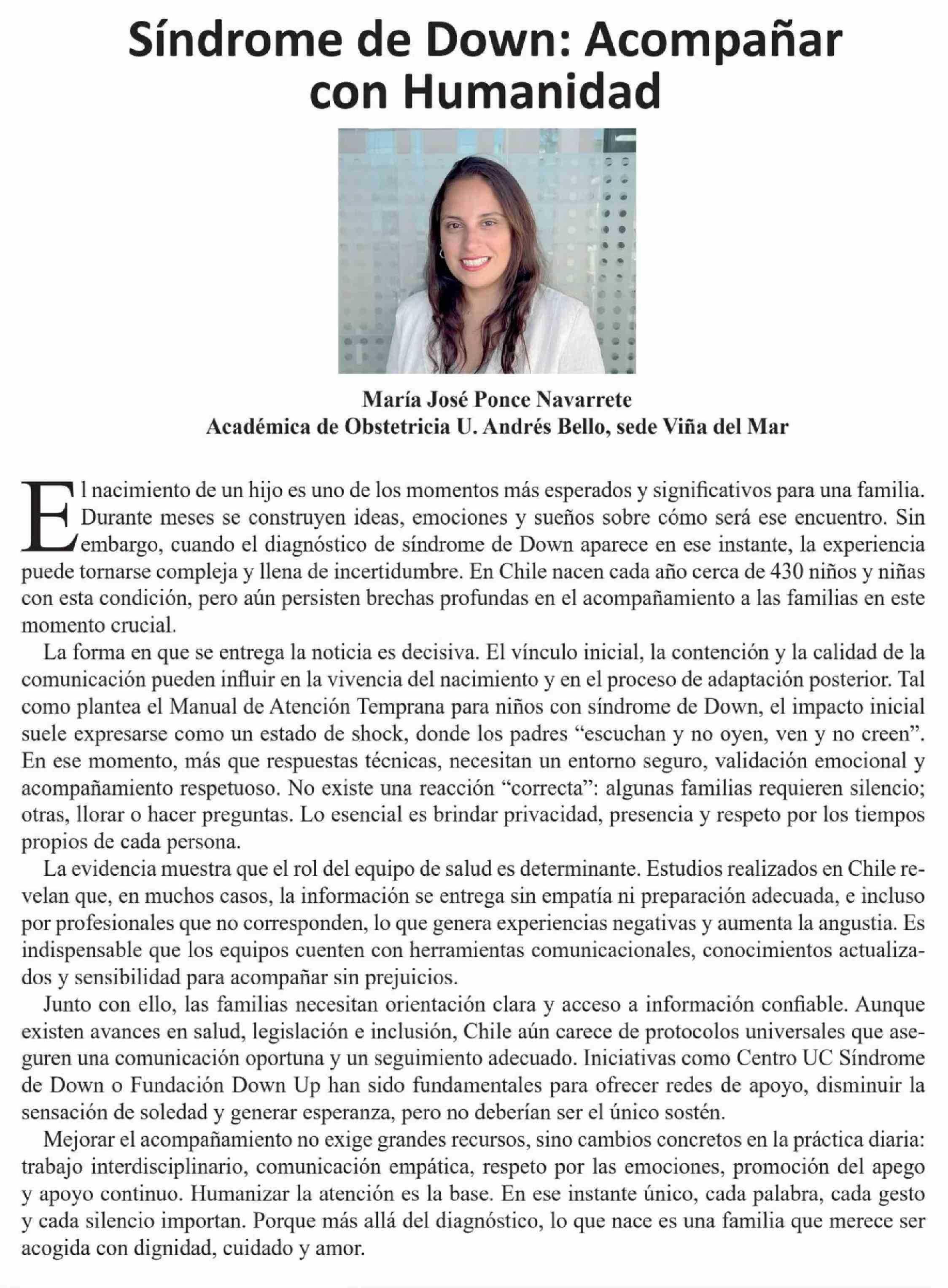 Título: Columnas de Opinión: Síndrome de Down: Acompañar con Humanidad