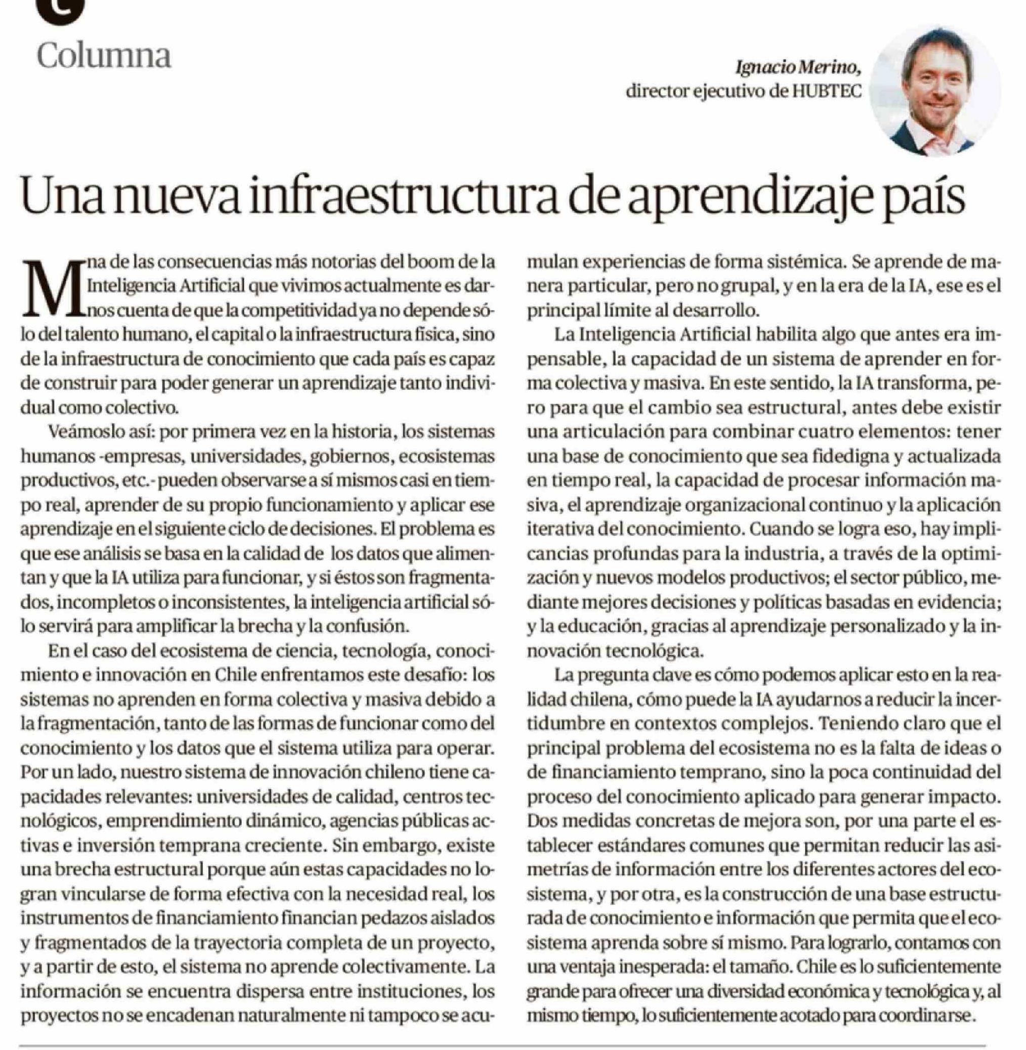 Columnas de Opinión: Una nueva infraestructura de aprendizaje país 19-03-2026 Crónica de Chillán |