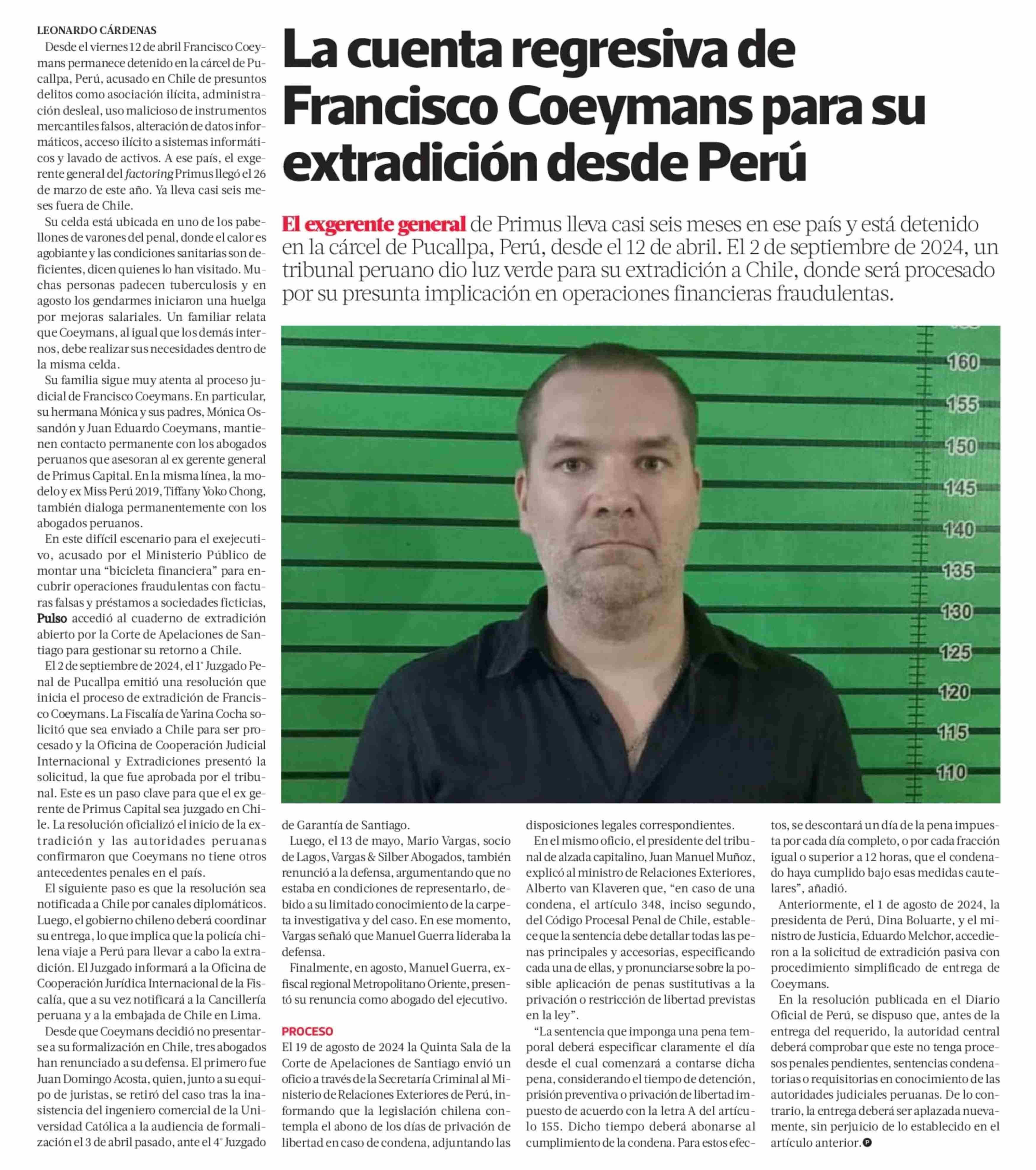 La cuenta regresiva de Francisco Coeymans para su extradición desde Perú 12-09-2024 La Tercera |
