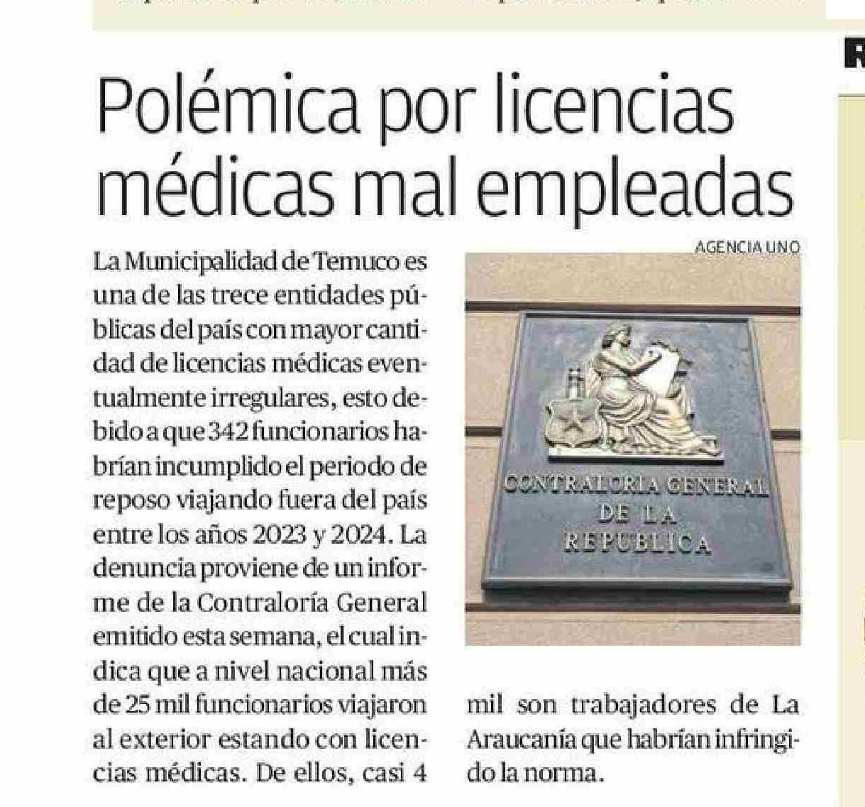 Polémica por licencias médicas mal empleadas 25-05-2025 El Austral de la Araucanía |