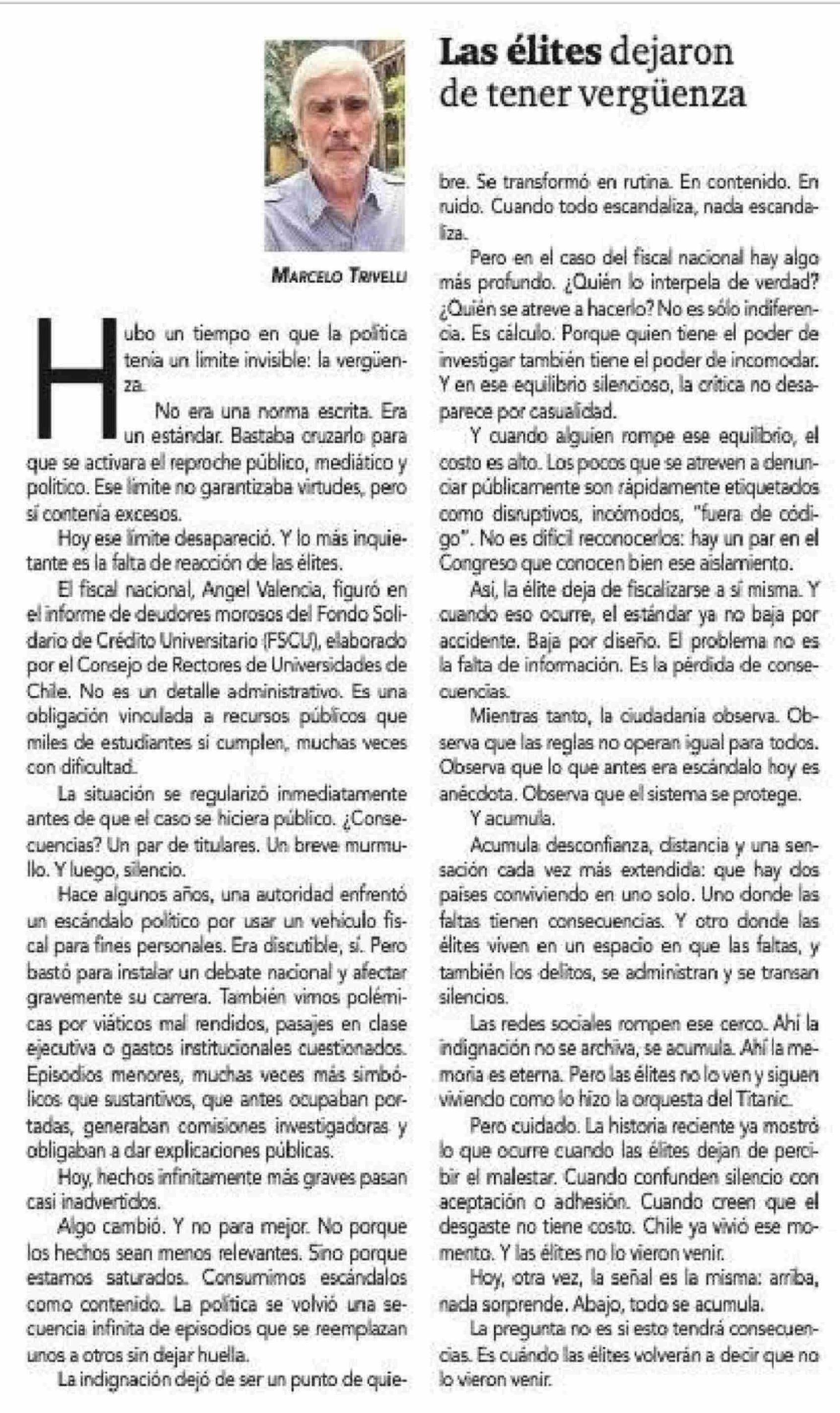 Título: COLUMNAS DE OPINIÓN: Las élites dejaron de tener vergilenza