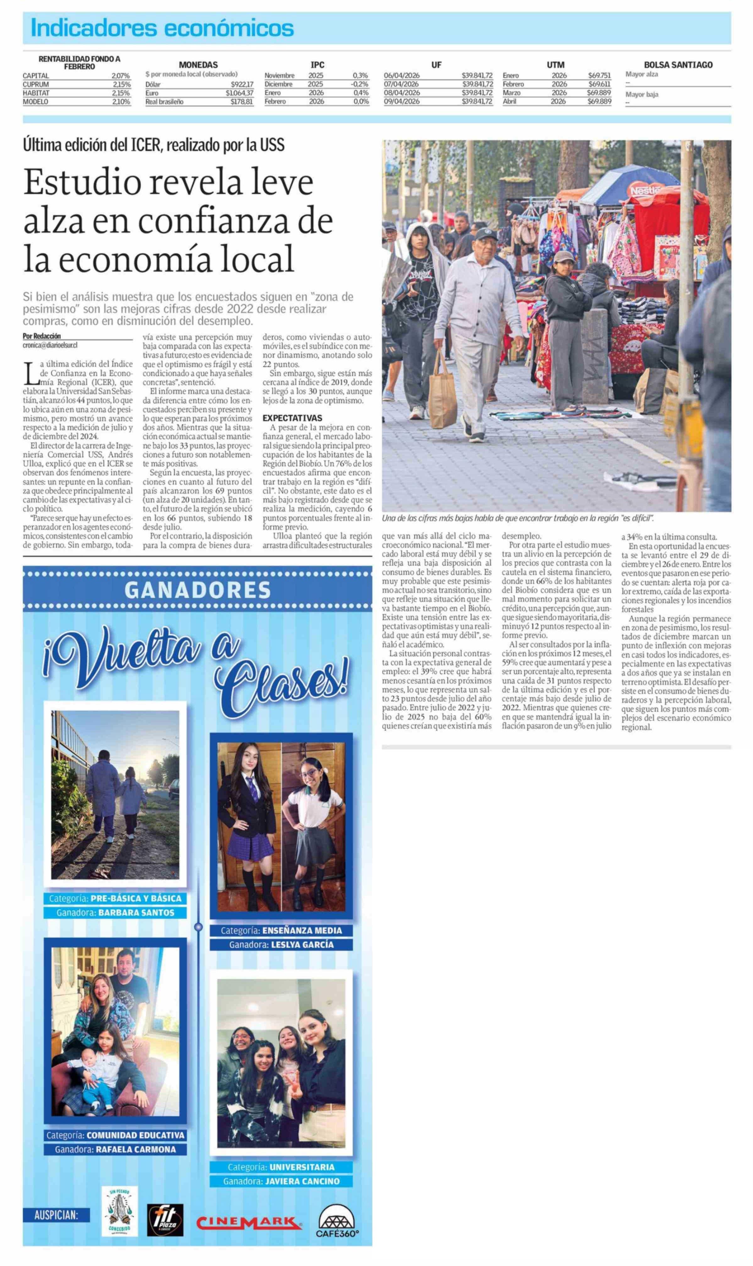 Estudio revela leve alza en confianza de la economía local 06-04-2026 El Sur |
