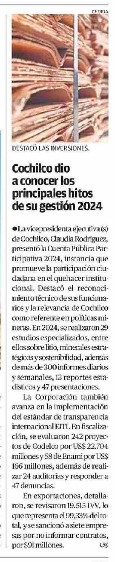 Cochilco dio a conocer los principales hitos de su gestión 2024 18-06-2025 El Mercurio de Calama |