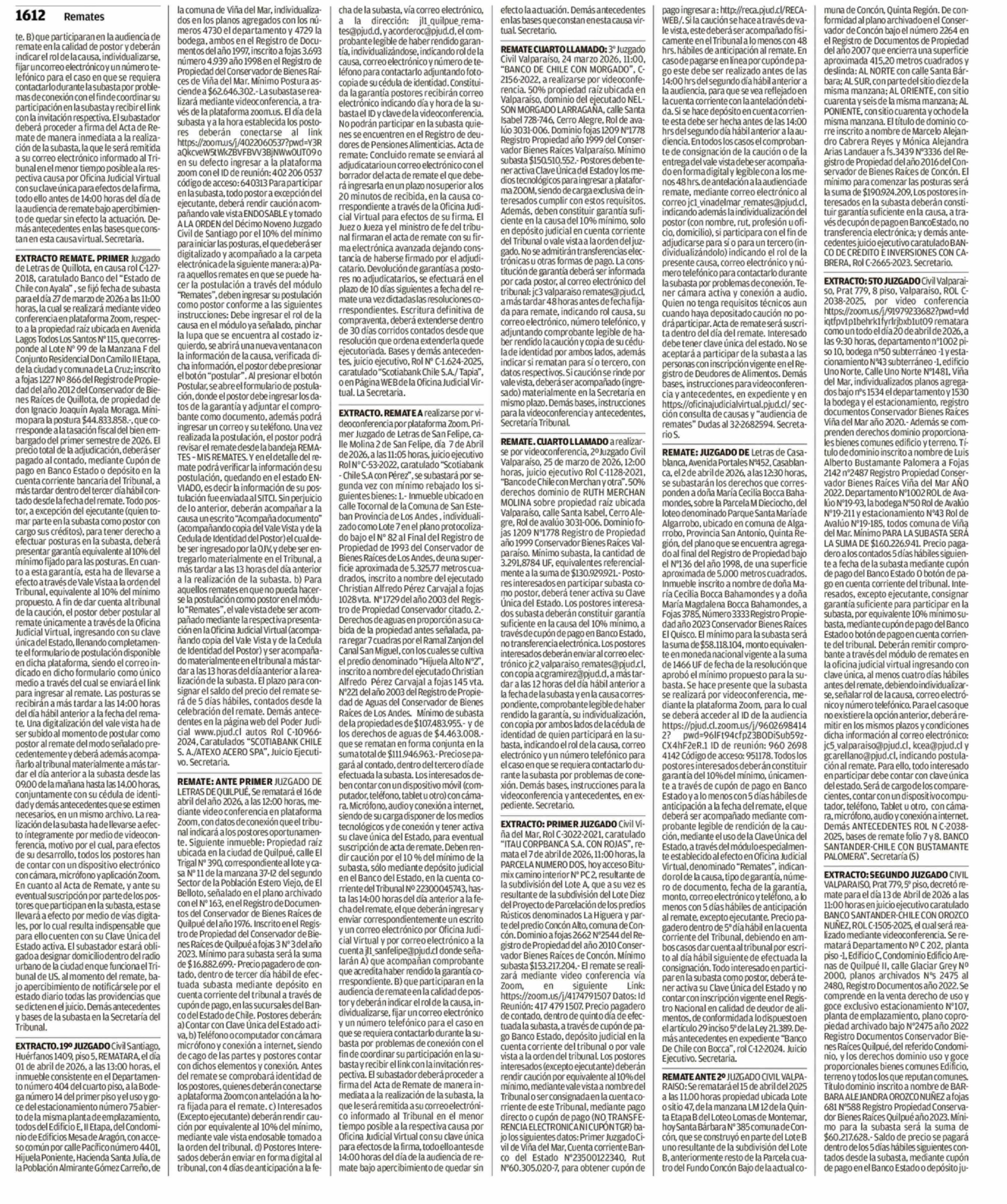 Fecha: 16-03-2026 Sector: Remates Región: Región de Valparaíso