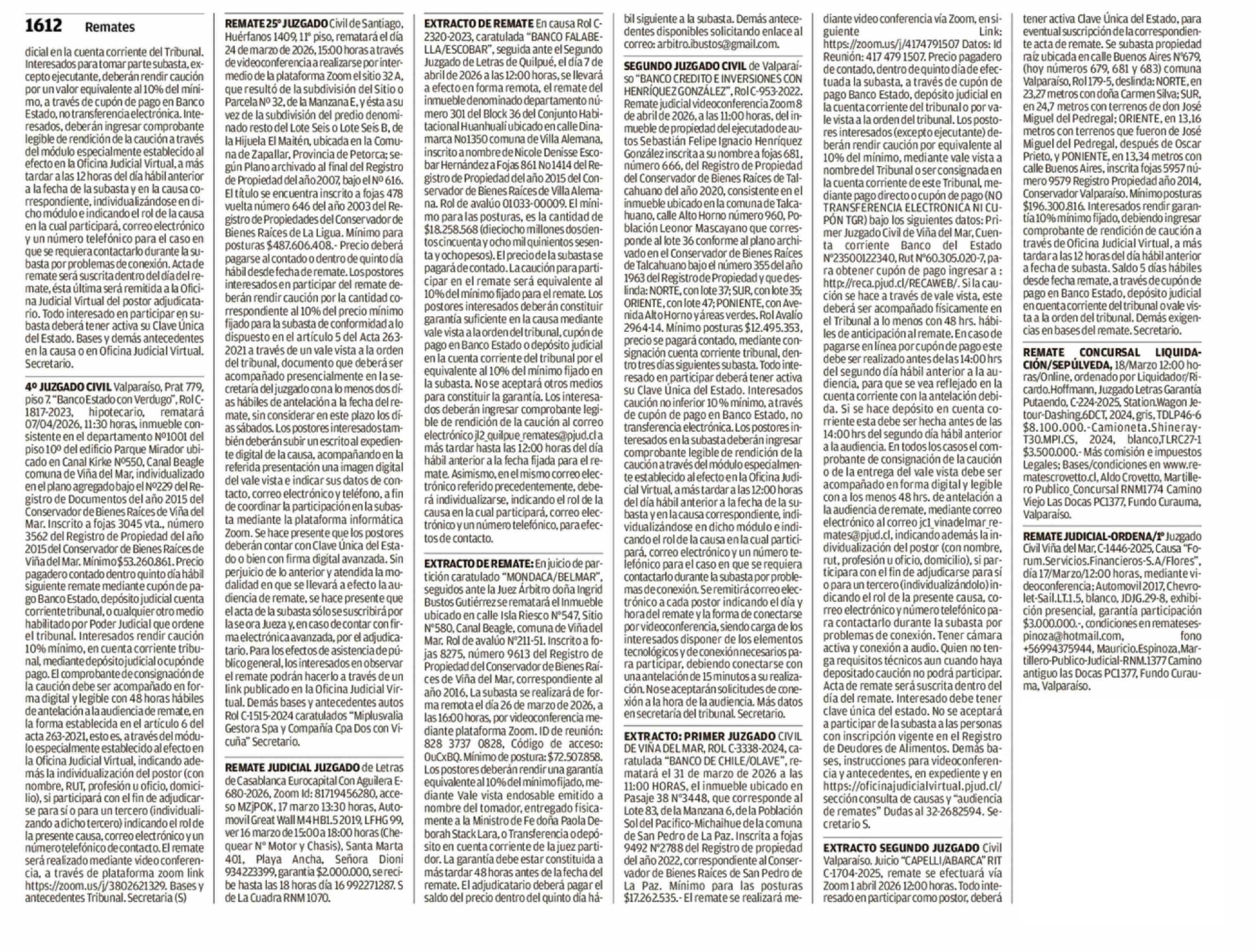 REMATES: 1612 REMATES 16-03-2026 El Mercurio de Valparaíso |