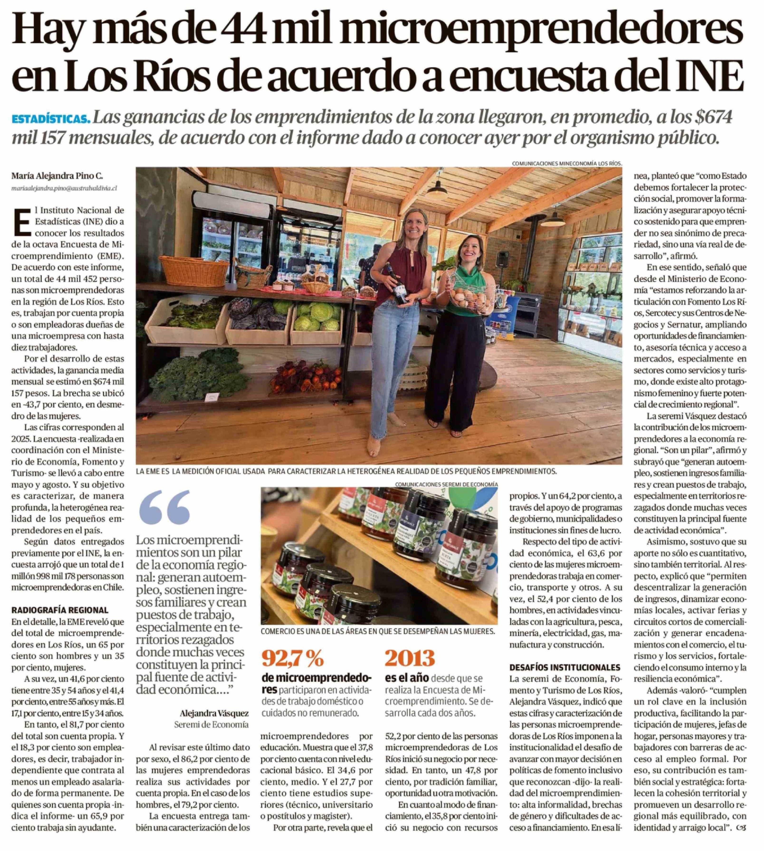 Hay más de 44 mil microemprendedores en Los Ríos de acuerdo a encuesta del INE 19-02-2026 Diario Austral Región de Los Ríos |