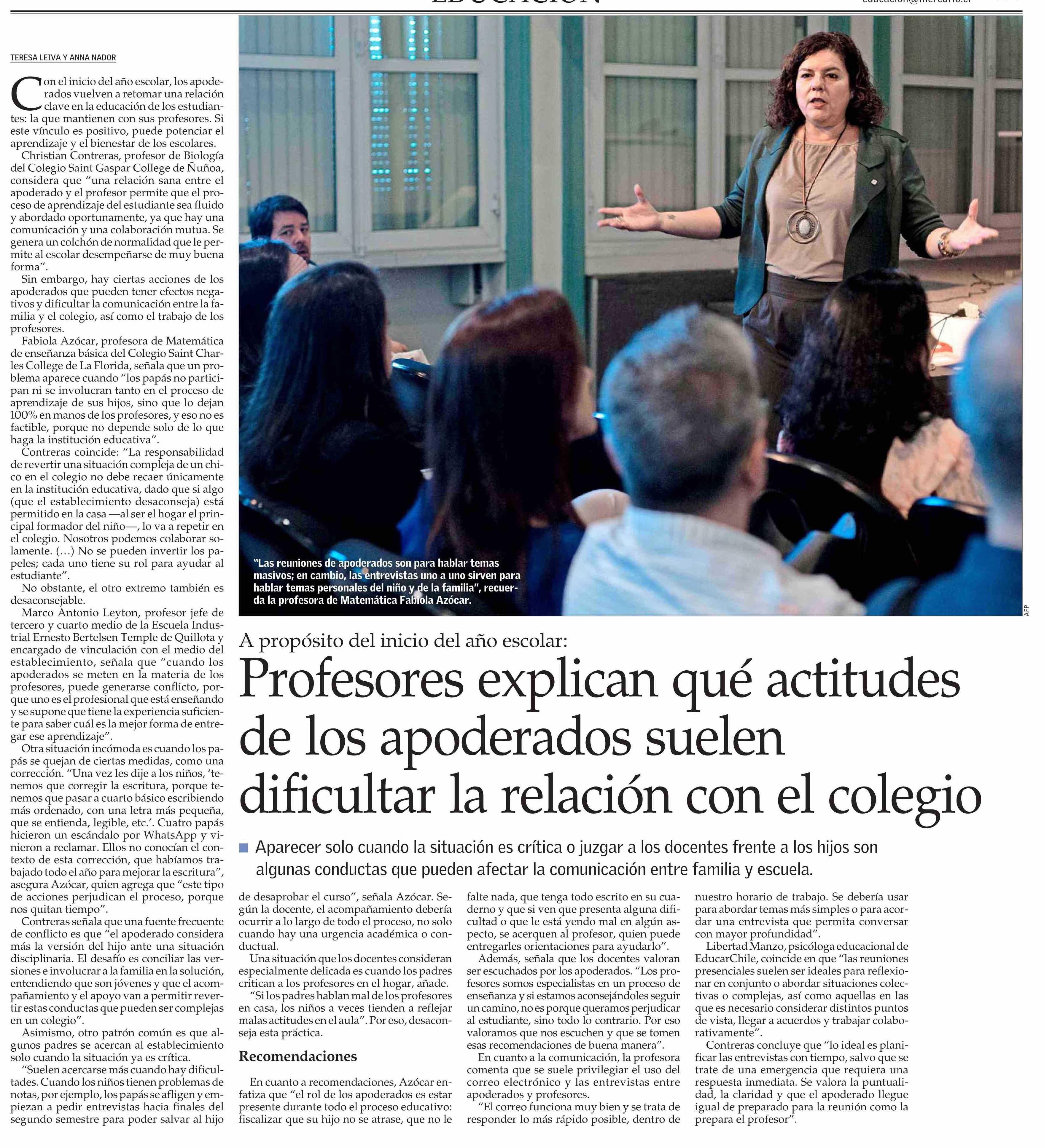 Título: Profesores explican qué actitudes de los apoderados suelen dificultar la relación con el colegio