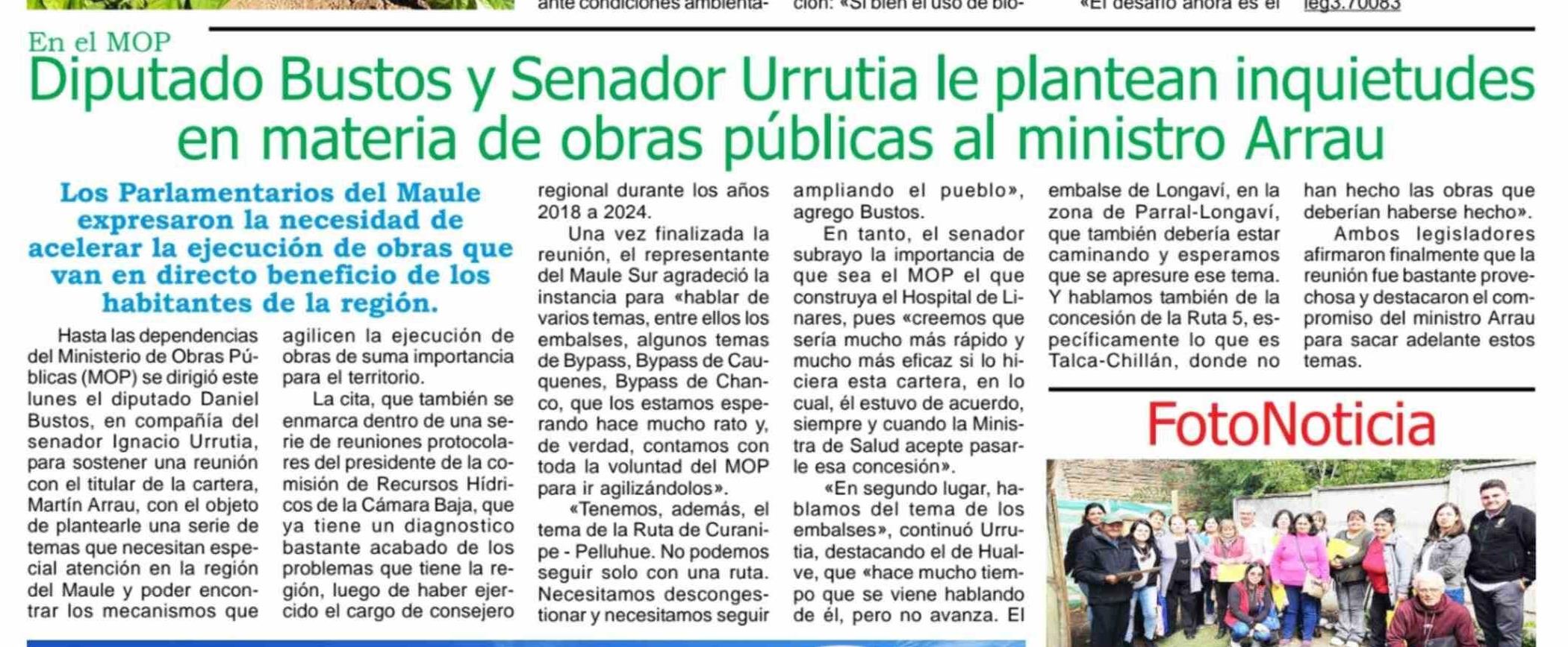 Diputado Bustos y Senador Urrutia le plantean inquietudes en materia de obras públicas al ministro Arrau 26-03-2026 Maule Hoy |