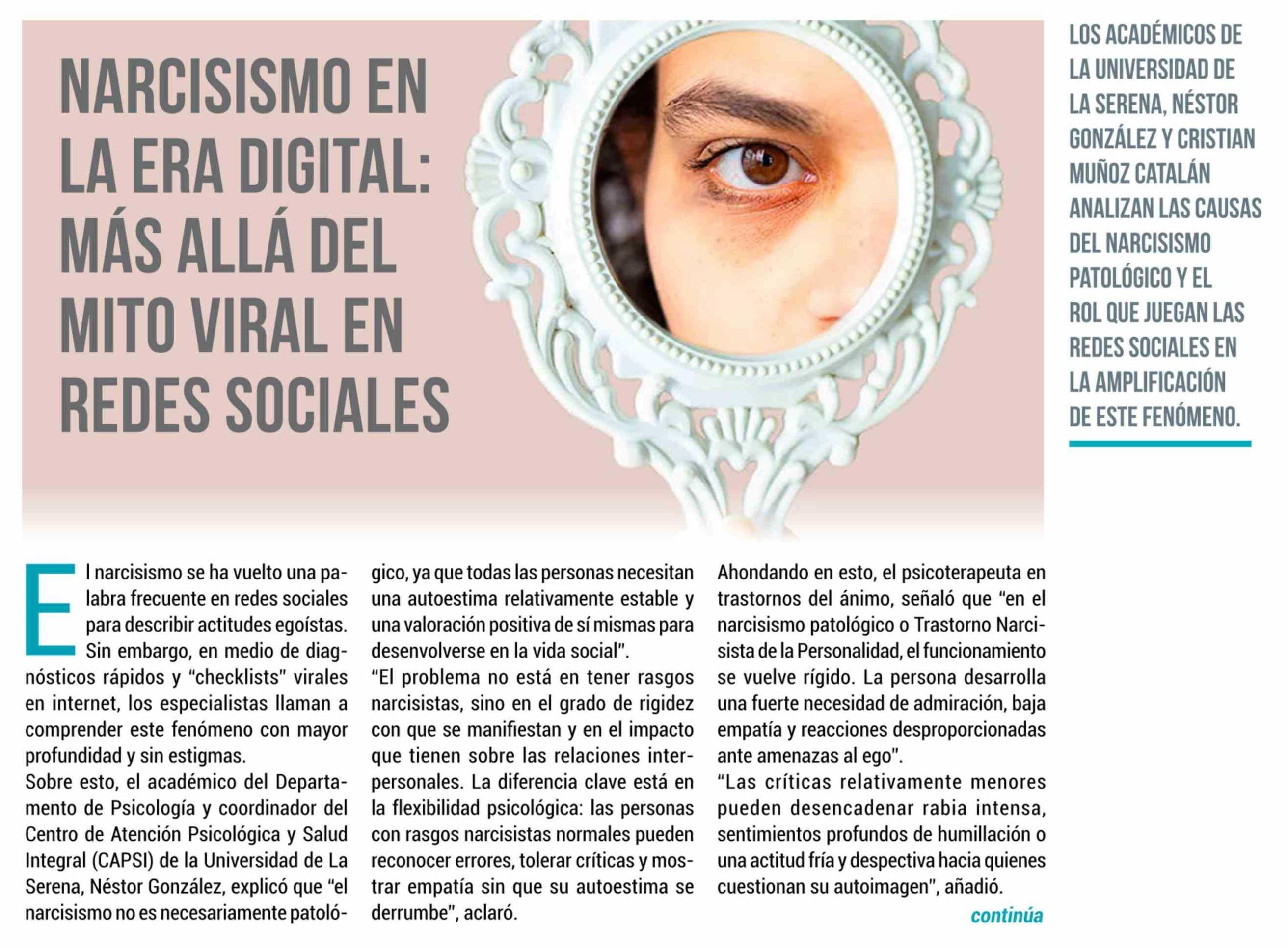 NARCISISMO EN LA ERA DIGITAL: MÁS ALLÁ DEL MITO VIRAL EN REDES SOCIALES 21-03-2026 El Rancagüino |