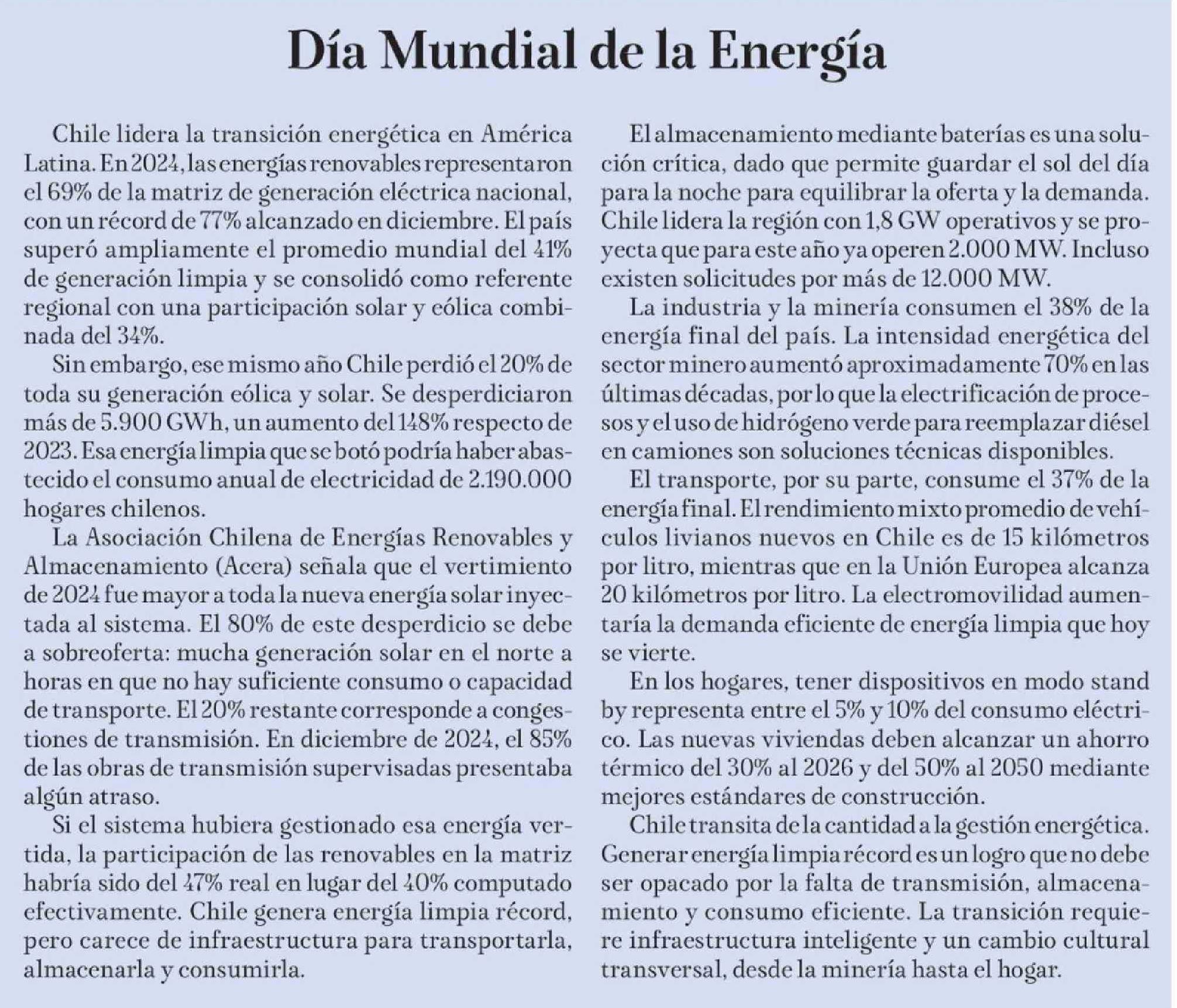 Editorial: Día Mundial de la Energía