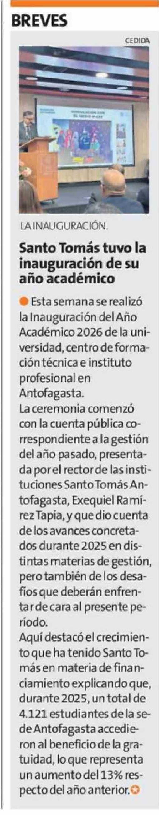 Santo Tomás tuvo la inauguración de su año académico 25-04-2026 La Estrella de Antofagasta |