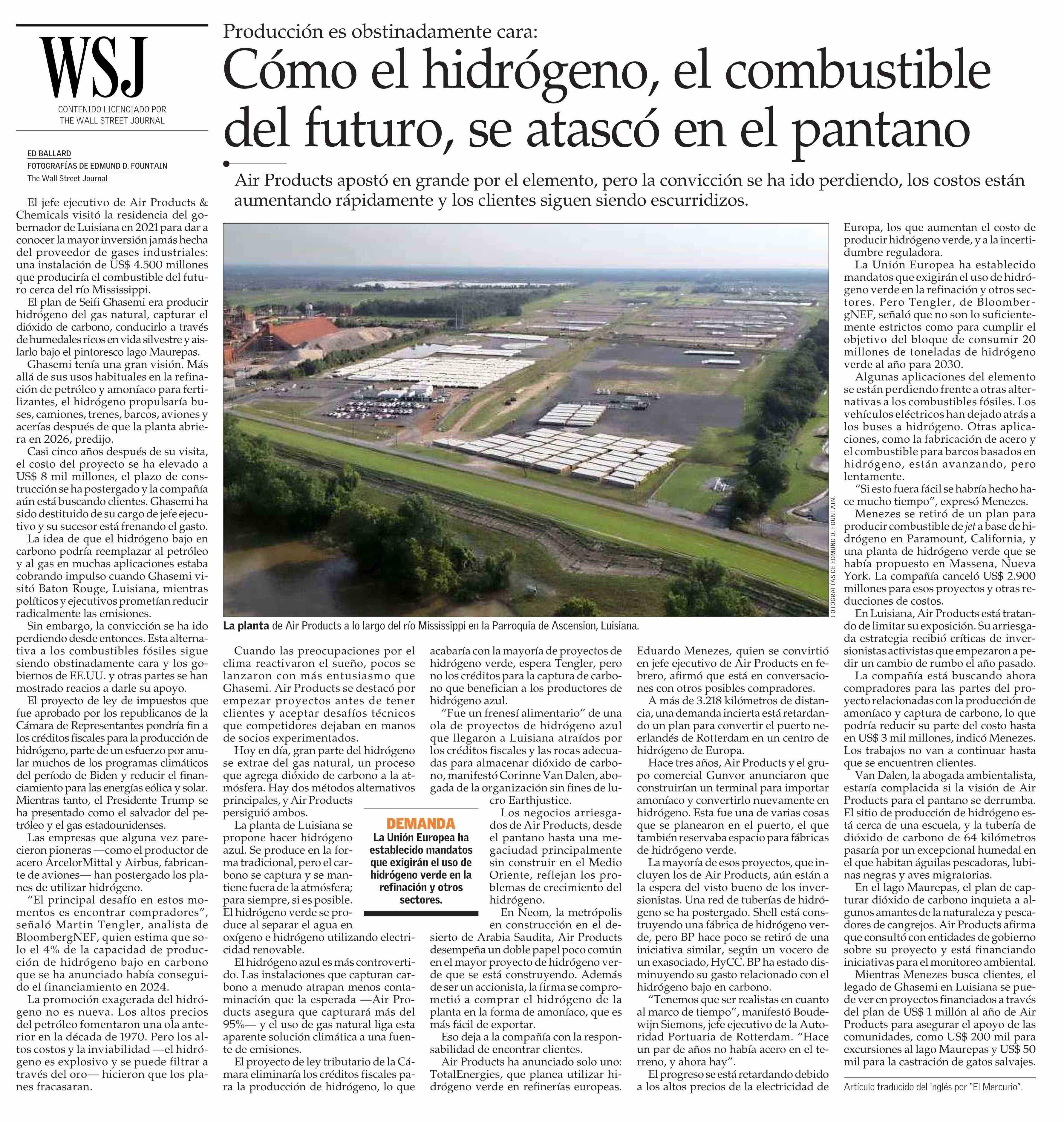 Cómo el hidrógeno, el combustible del futuro, se atascó en el pantano 16-06-2025 El Mercurio |