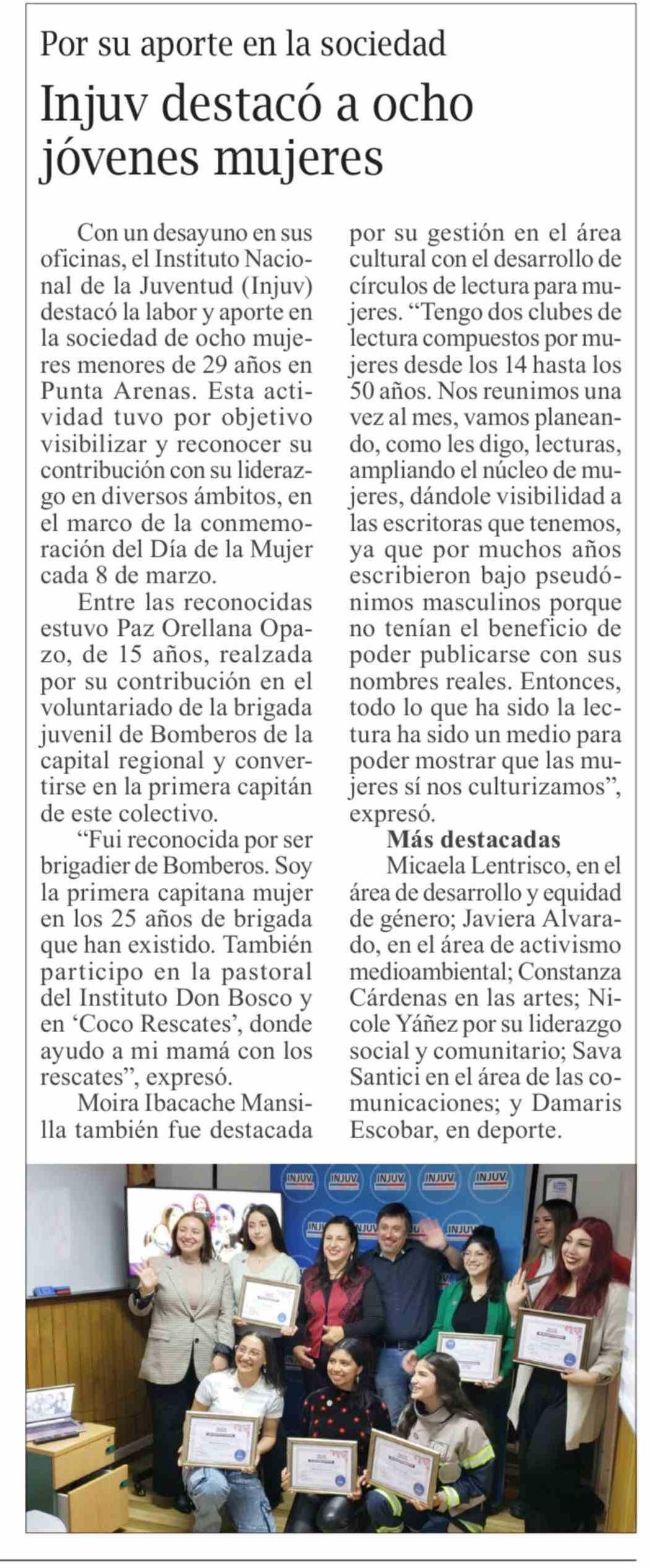 Título: Injuv destacó a ocho jóvenes mujeres