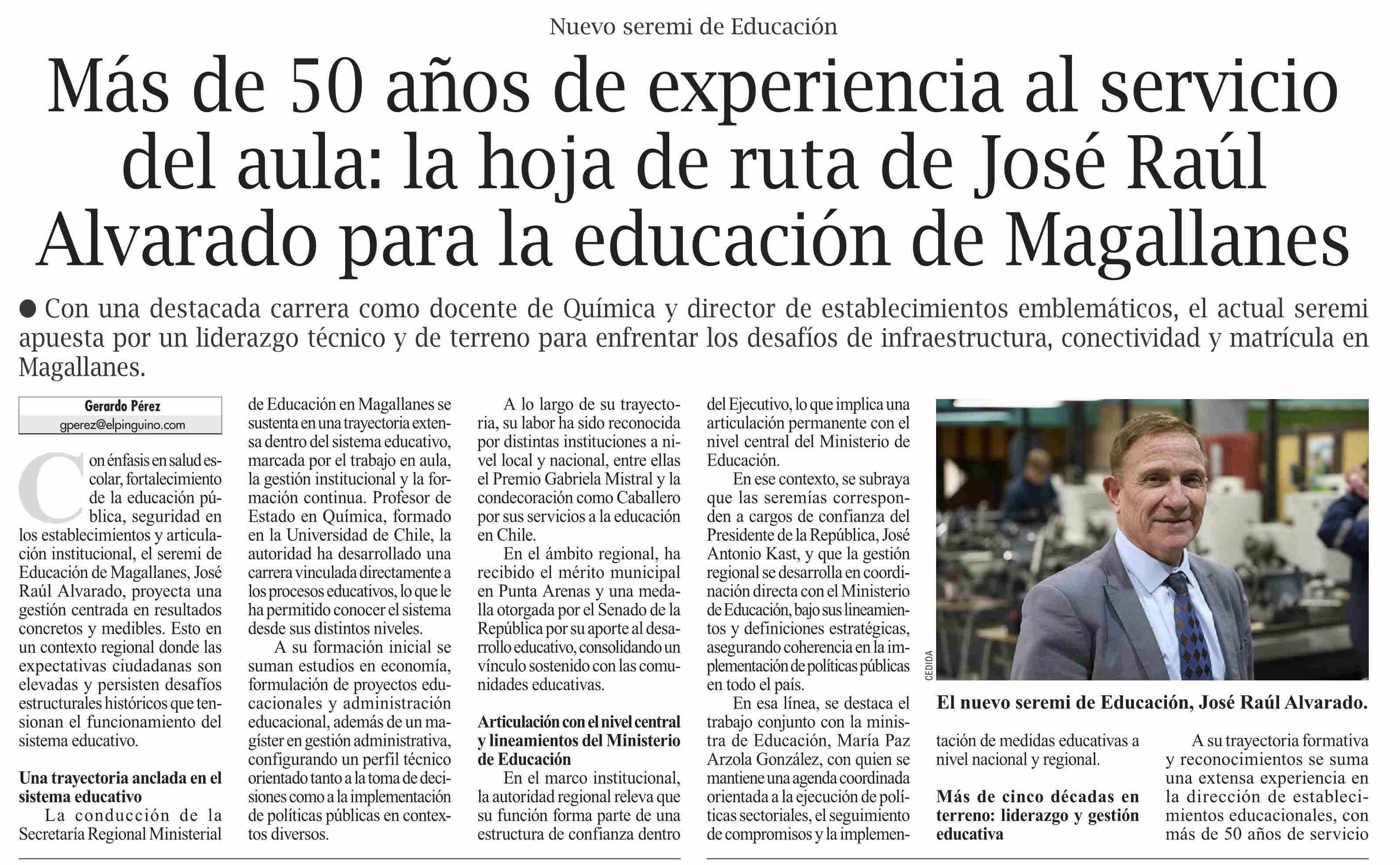 Título: Más de 50 años de experiencia al servicio del aula: la hoja de ruta de José Raúl Alvarado para la educación de Magallanes
