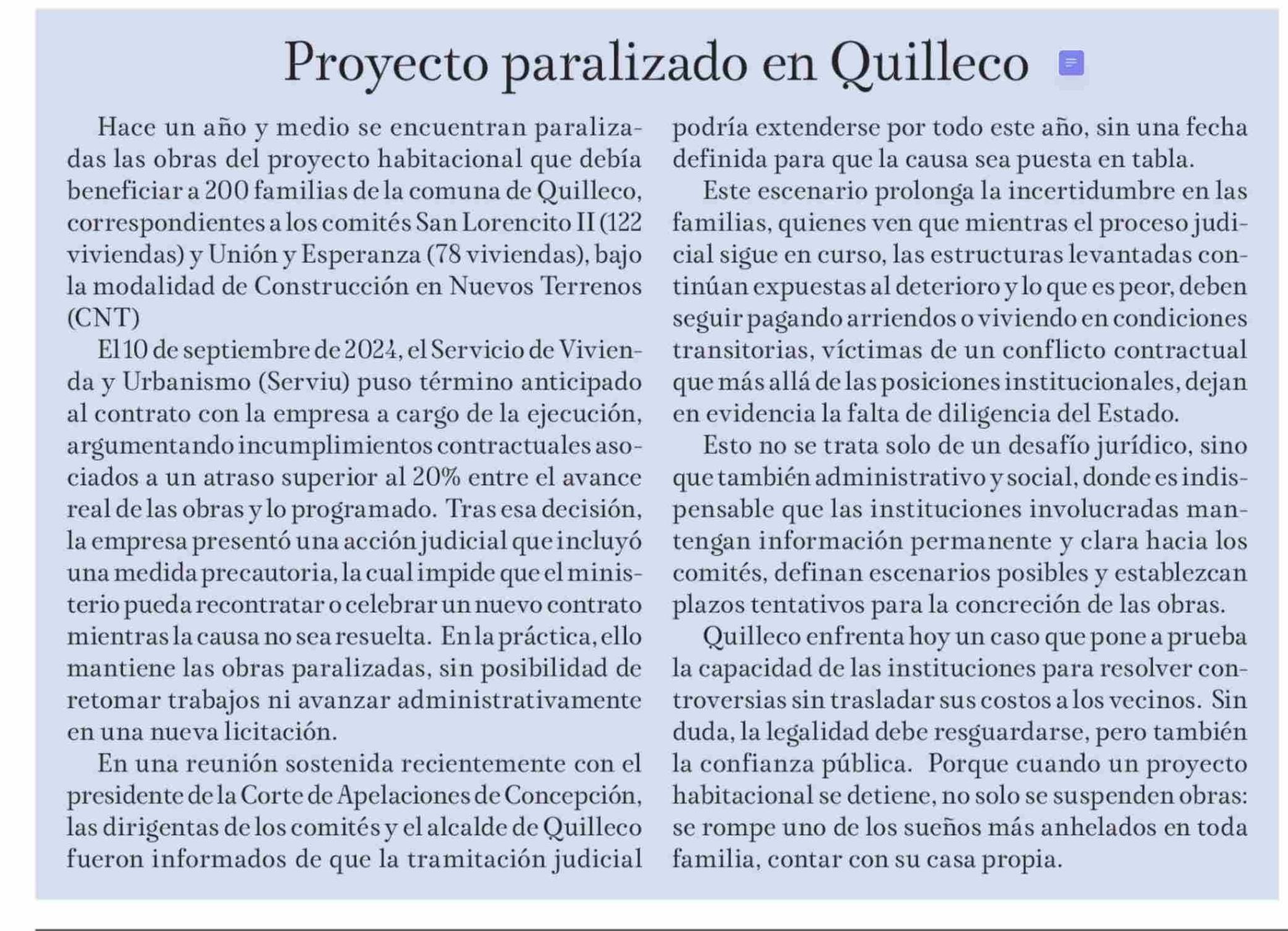 Título: EDITORIAL: Proyecto paralizado en Quilleco