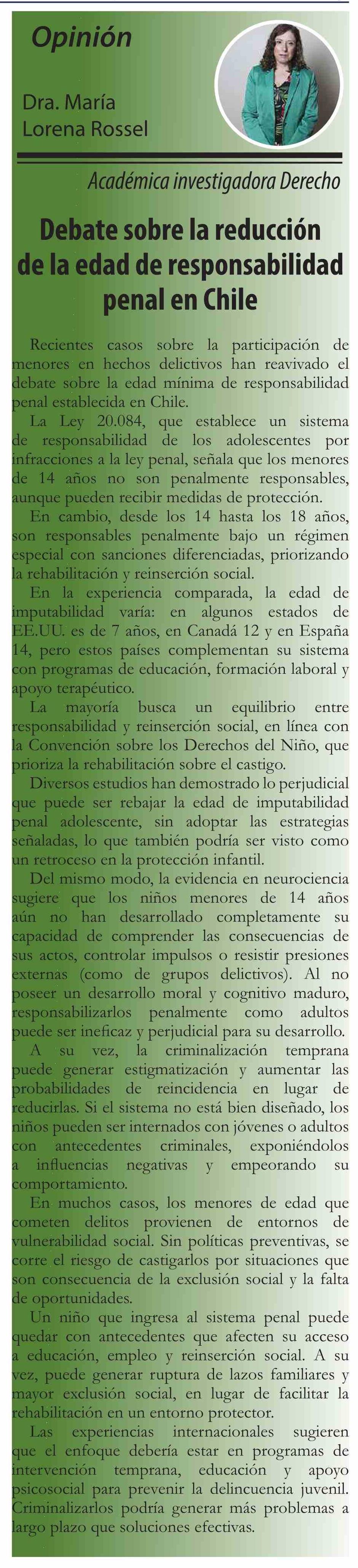 Columnas de Opinión: Debate sobre la reducción de la edad de responsabilidad penal en Chile 03-06-2025 El Divisadero |