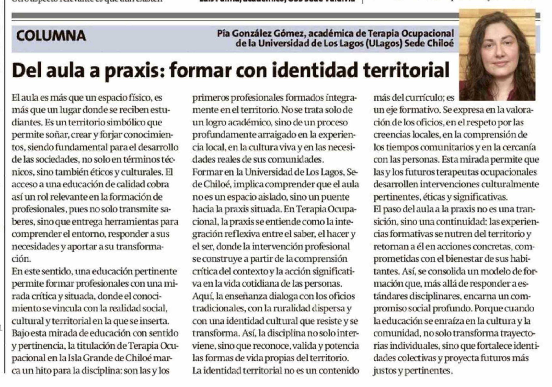 Columnas de Opinión: Del aula a praxis: formar con identidad territorial 16-04-2026 La Estrella de Chiloé |