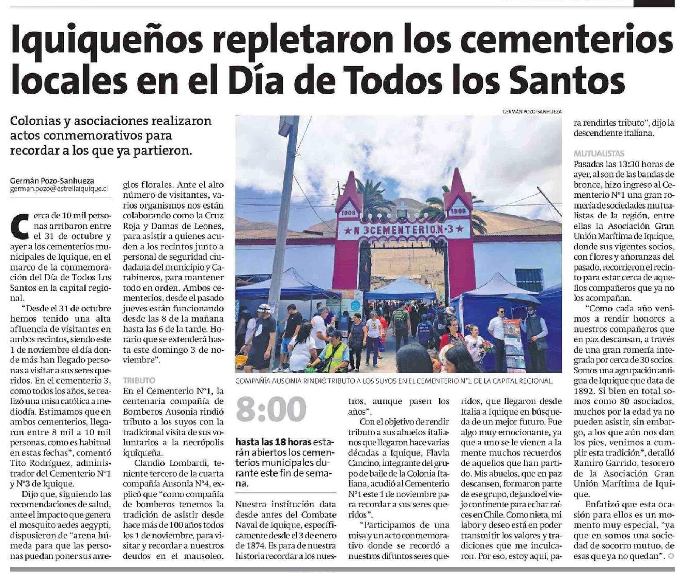 Iquiqueños repletaron los cementerios locales en el Día de Todos los Santos 02-11-2024 La Estrella de Iquique |
