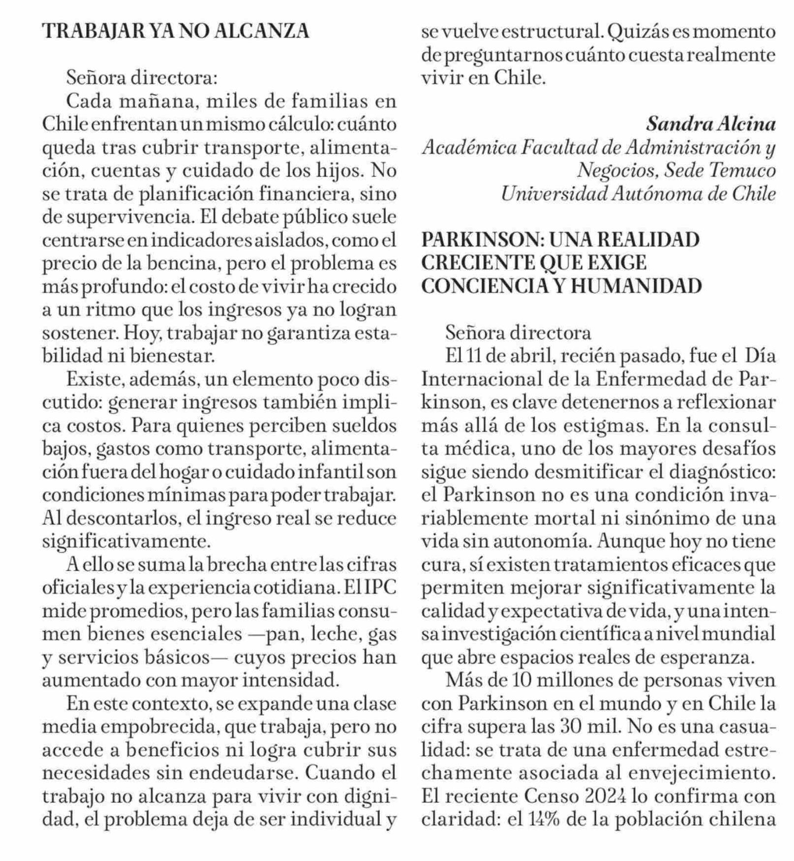 CARTAS: TRABAJAR YA NO ALCANZA