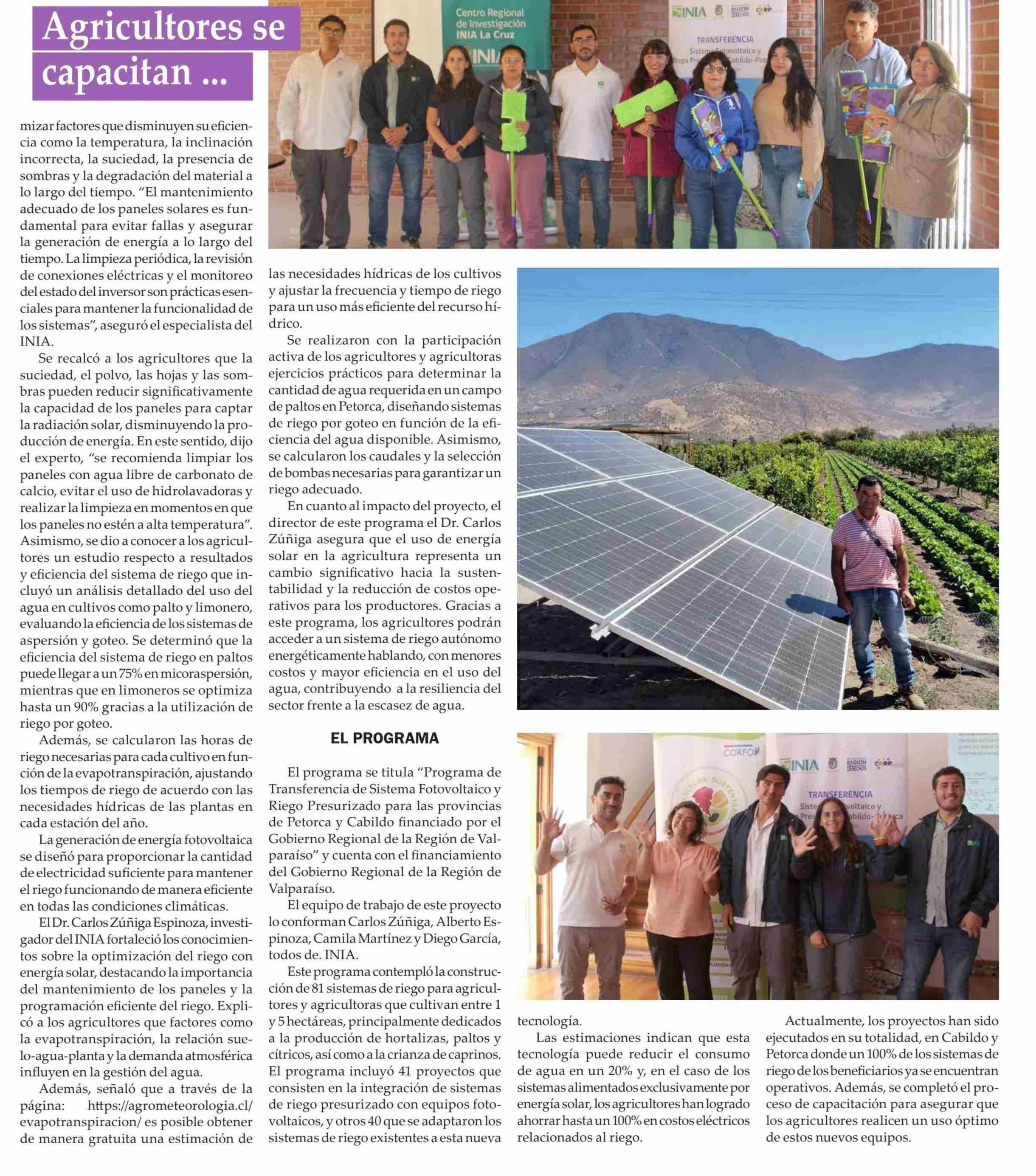 Agricultores se capacitan para optimizar el rendimiento de sus paneles fotovoltaicos 28-05-2025 El Observador Vespertino |