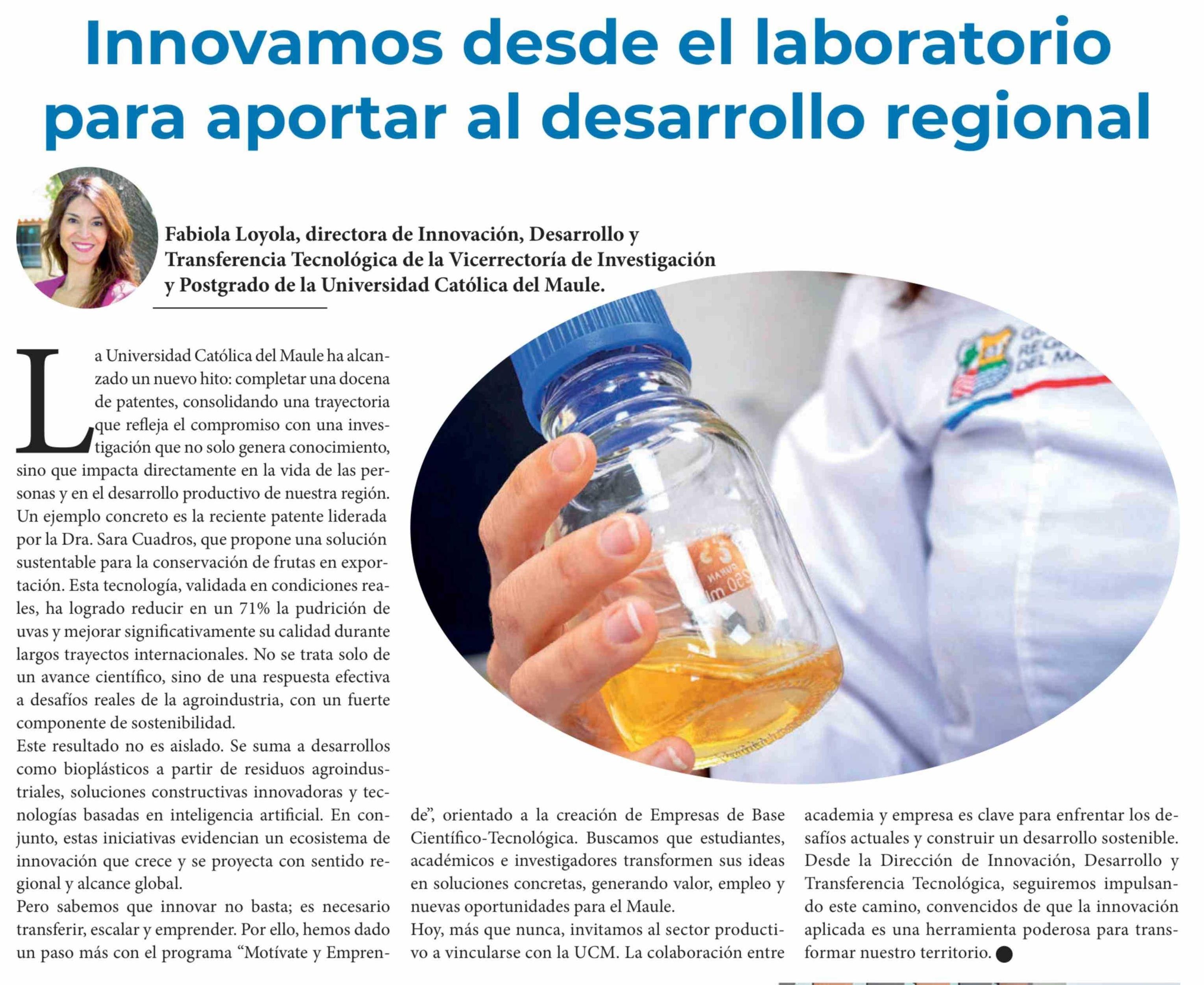 Título: Columnas de Opinión: Innovamos desde el laboratorio para aportar al desarrollo regional