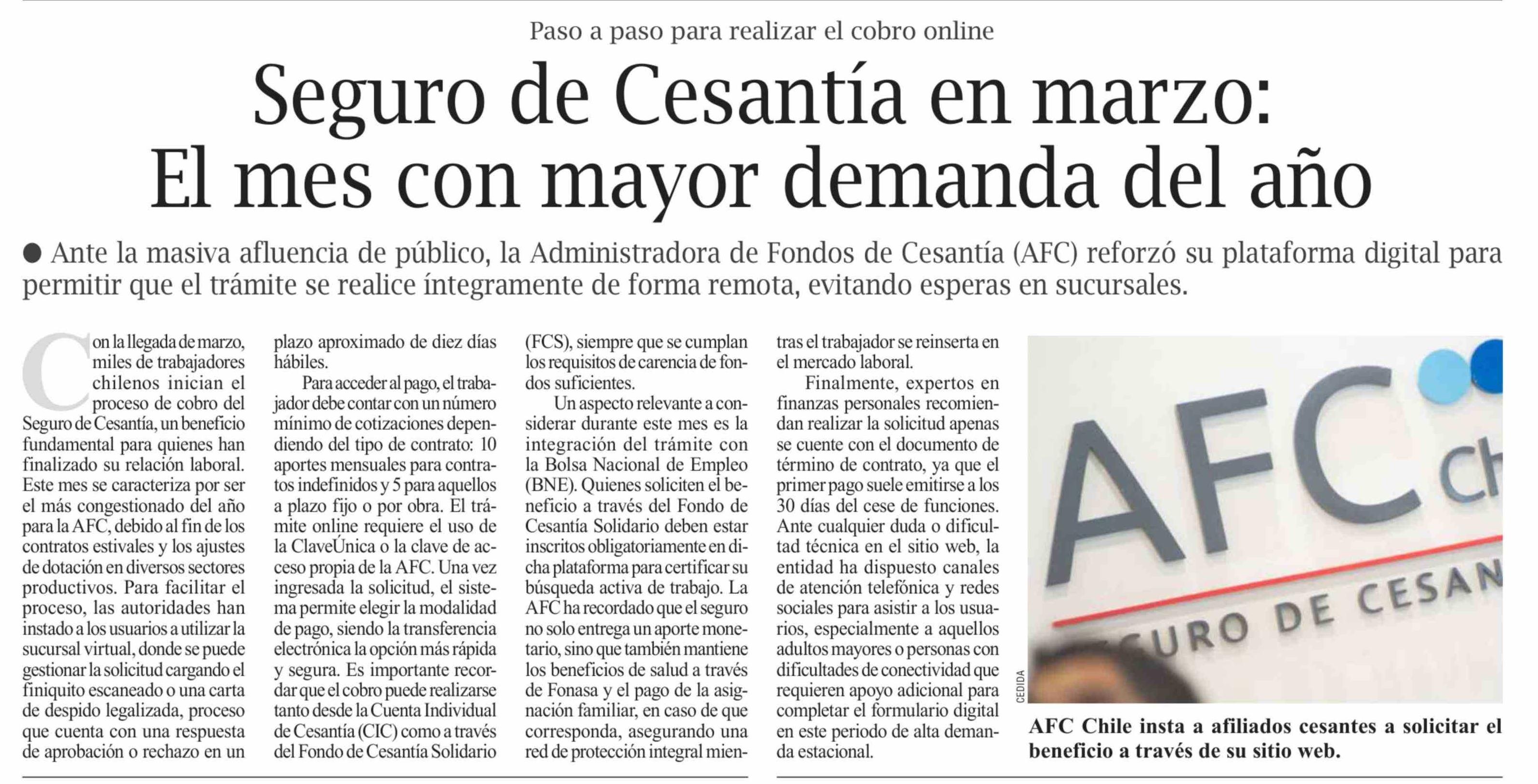 Título: Seguro de Cesantía en marzo: El mes con mayor demanda del año