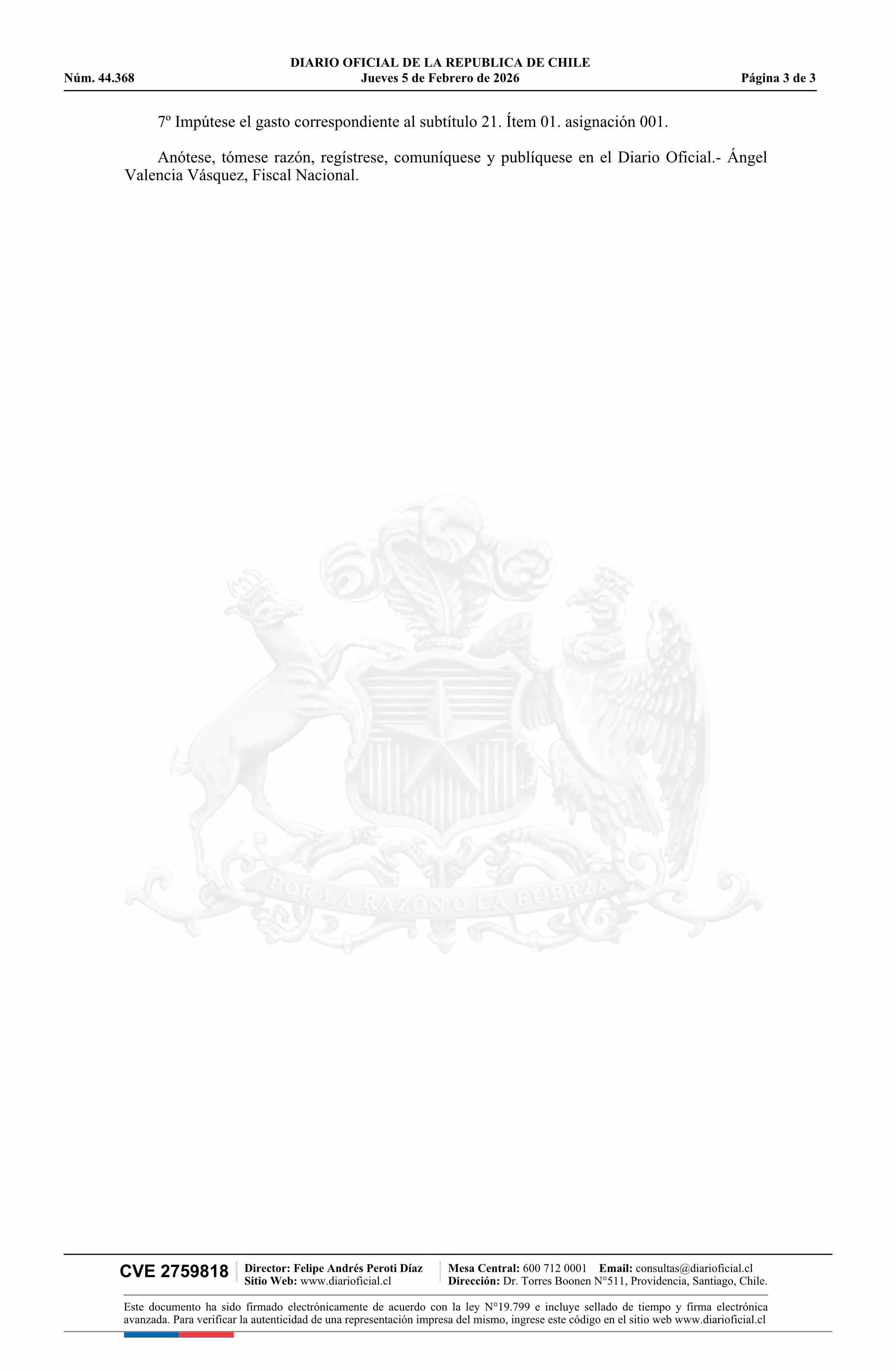 | Título: | Resolución número TR 3, de 2025.- Nombra a don Miguel Ángel Orellana Pérez en el cargo de Fiscal Jefe de la Fiscalía Supraterritorial |