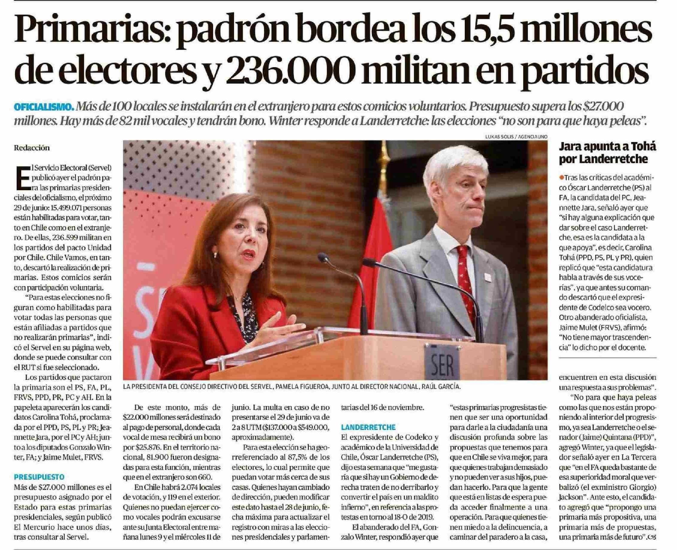 Primarias: padrón bordea los 15,5 millones de electores y 236.000 militan en partidos 08-06-2025 Diario Austral Región de Los Ríos |