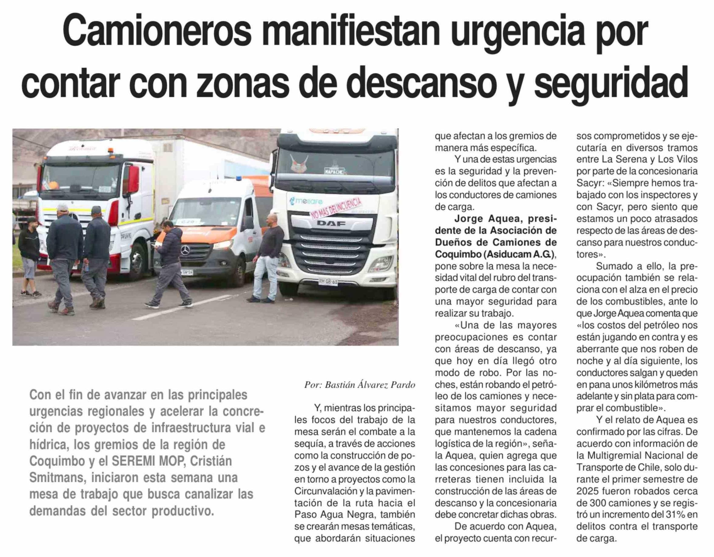 Camioneros manifiestan urgencia por contar con zonas de descanso y seguridad 05-04-2026 Diario la Región |