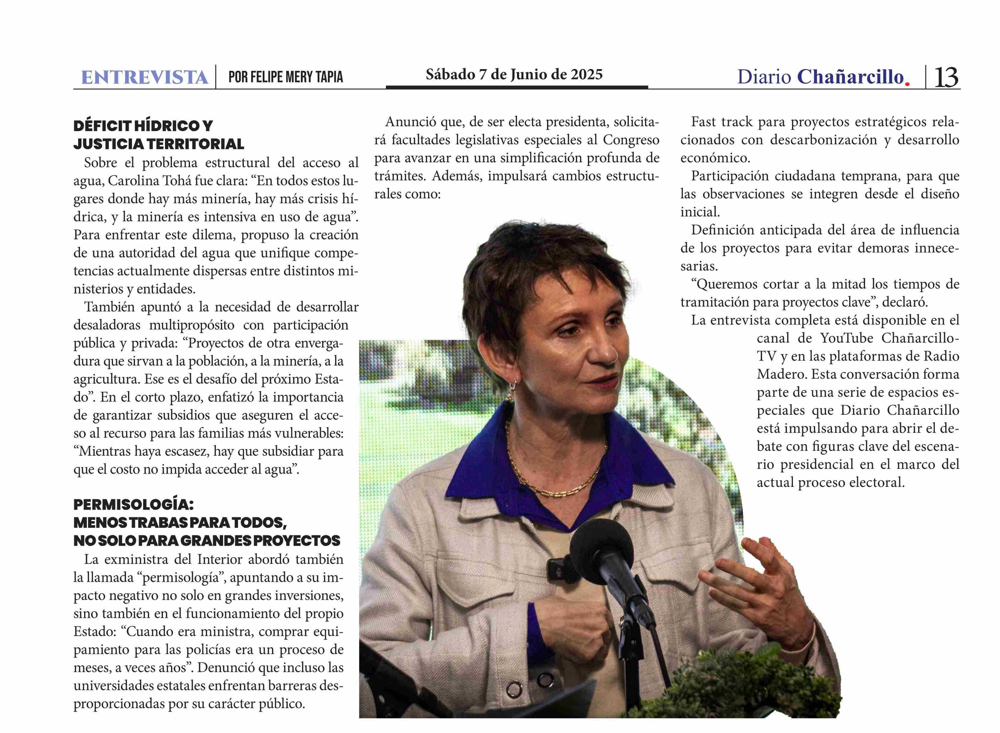 "El país necesita un Estado que colabore más y trámite menos" 07-06-2025 Diario Chañarcillo |