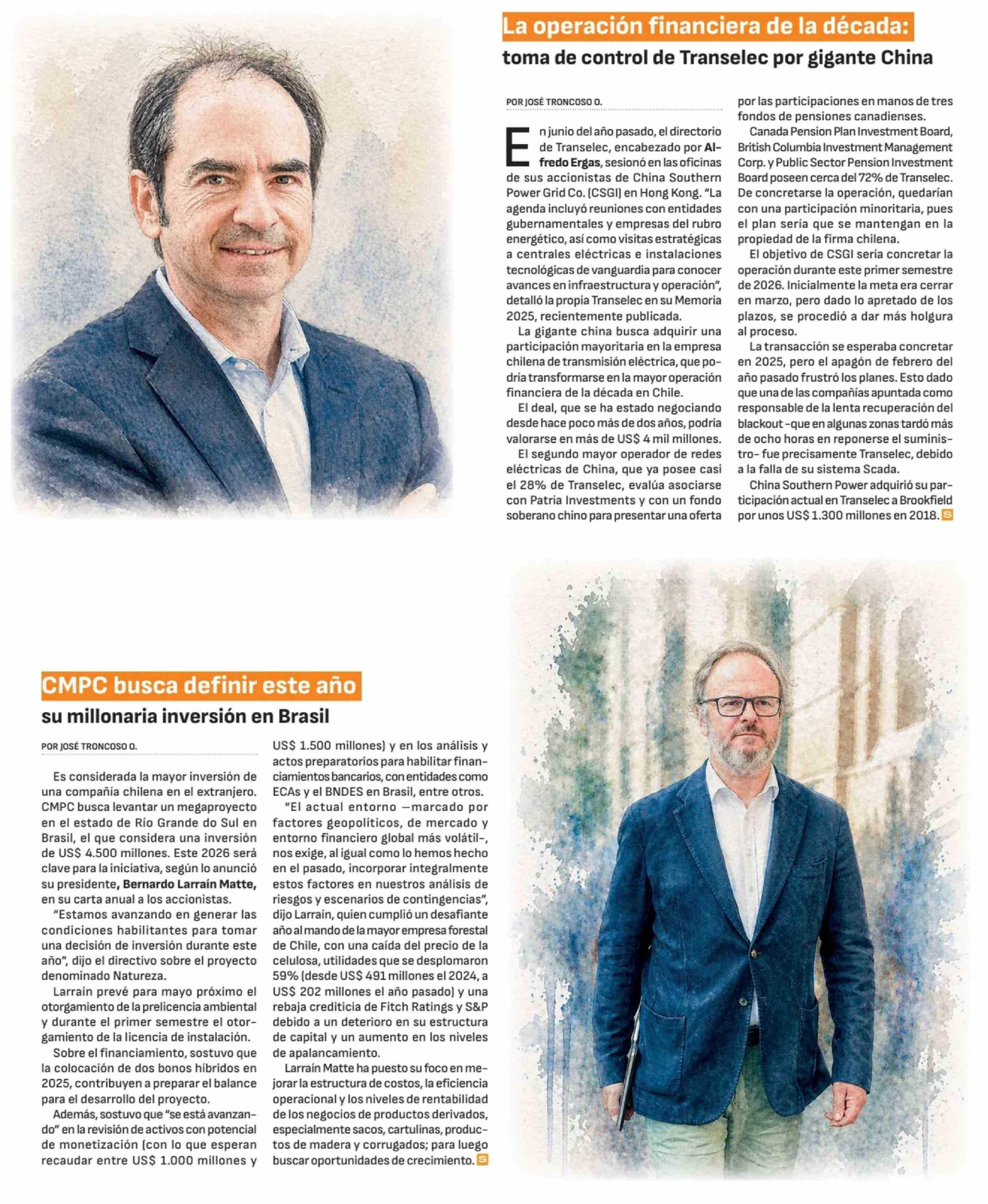 Los ejecutivos que marcarán la agenda de negocios del año 25-04-2026 Diario Financiero |