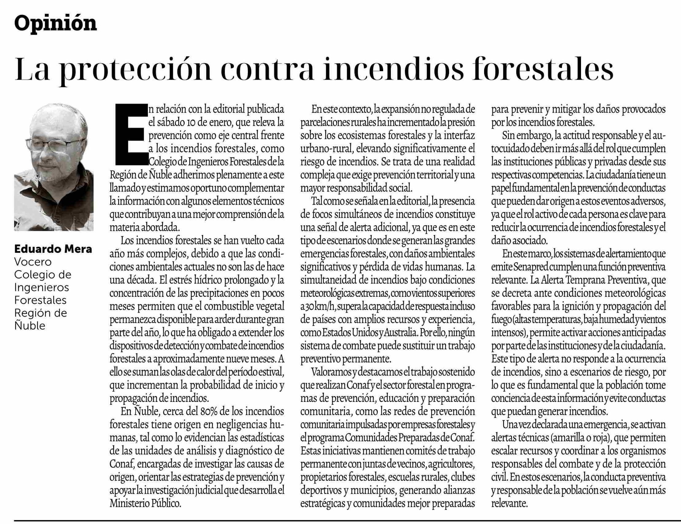 Columnas de Opinión: La protección contra incendios forestales 16-01-2026 La Discusión |