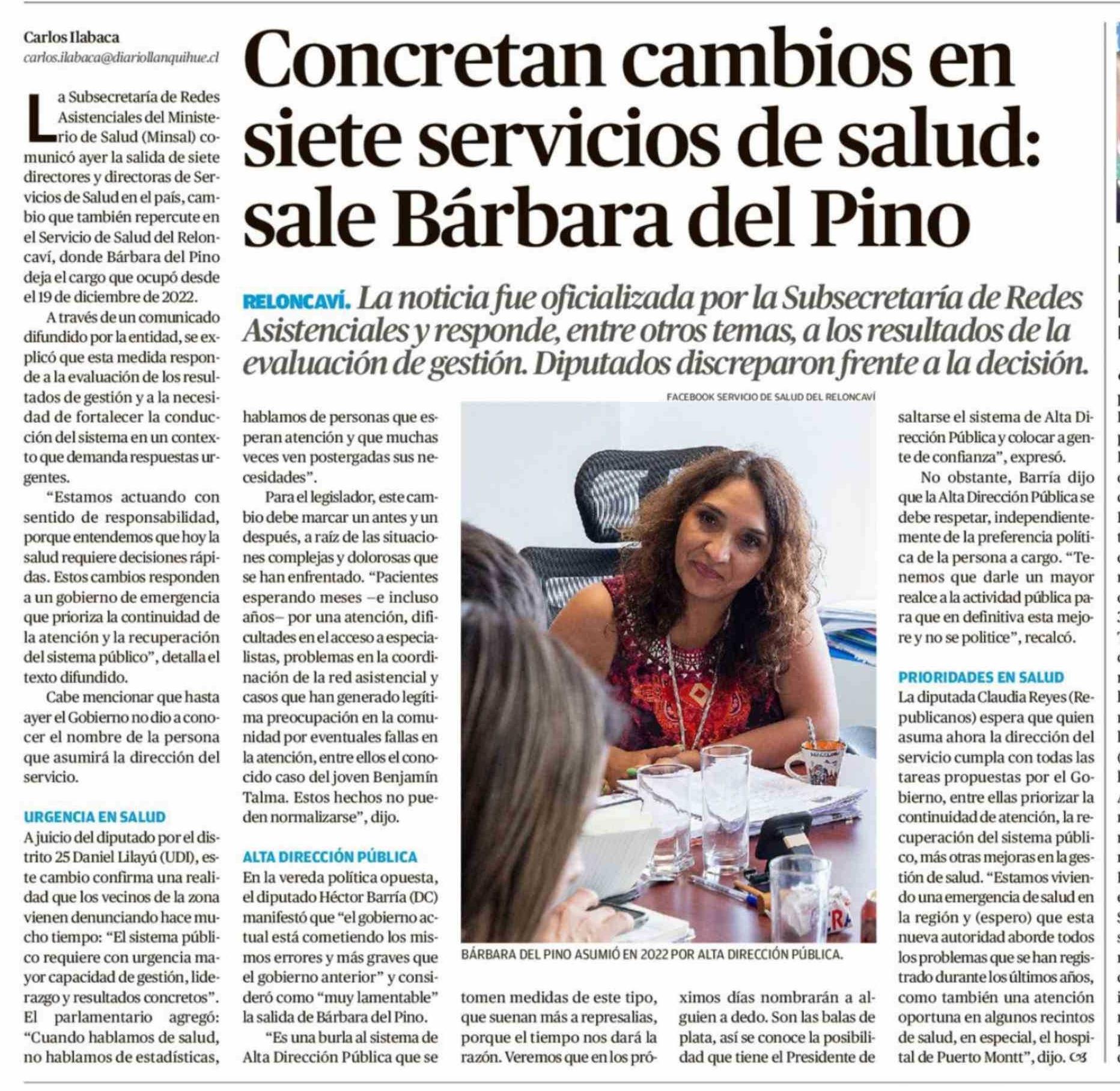 Concretan cambios en siete servicios de salud: sale Bárbara del Pino 19-03-2026 El Llanquihue |