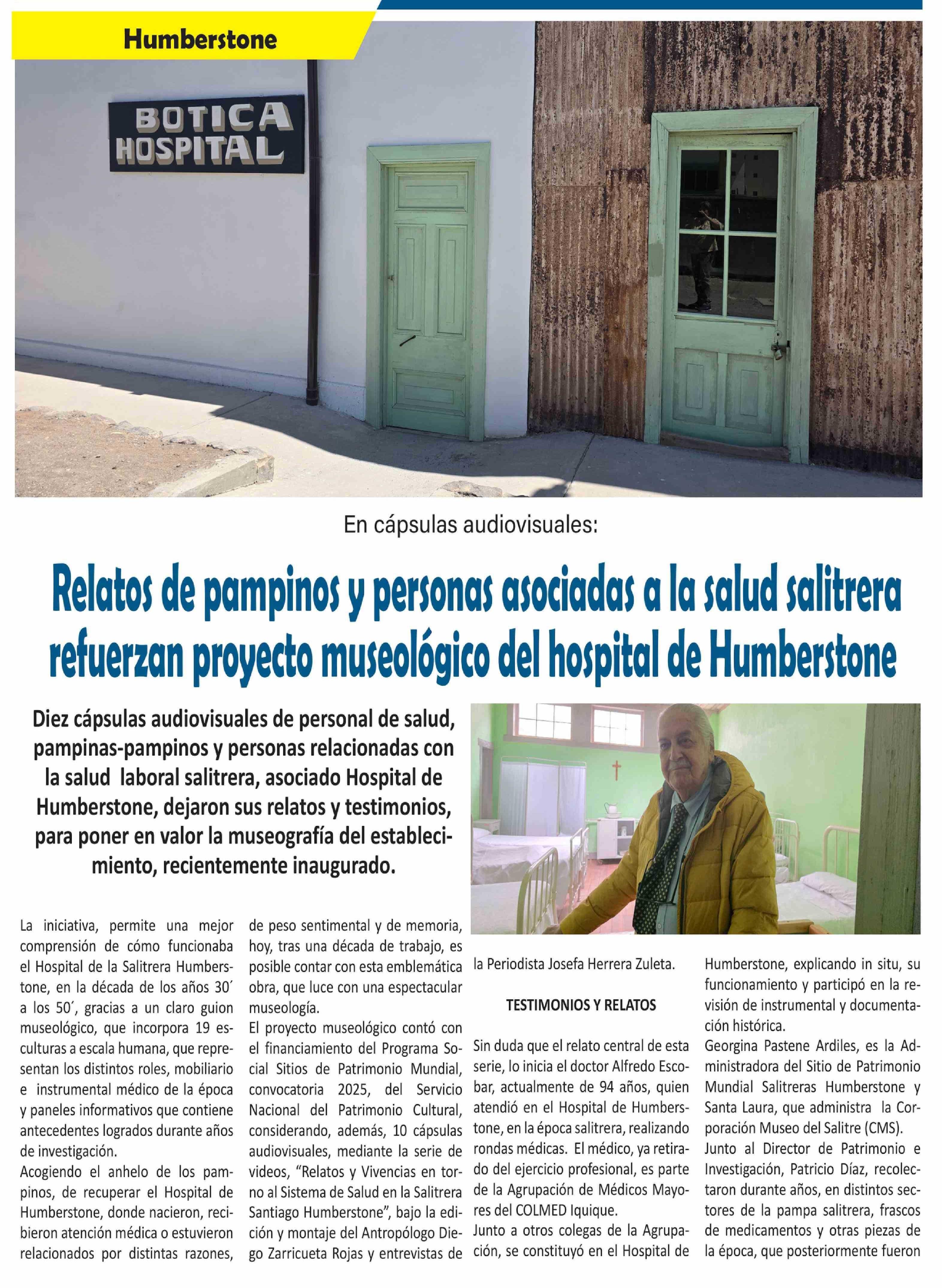 | Título: | Relatos de pampinos y personas asociadas a la salud salitrera refuerzan proyecto museológico del hospital de Humberstone |