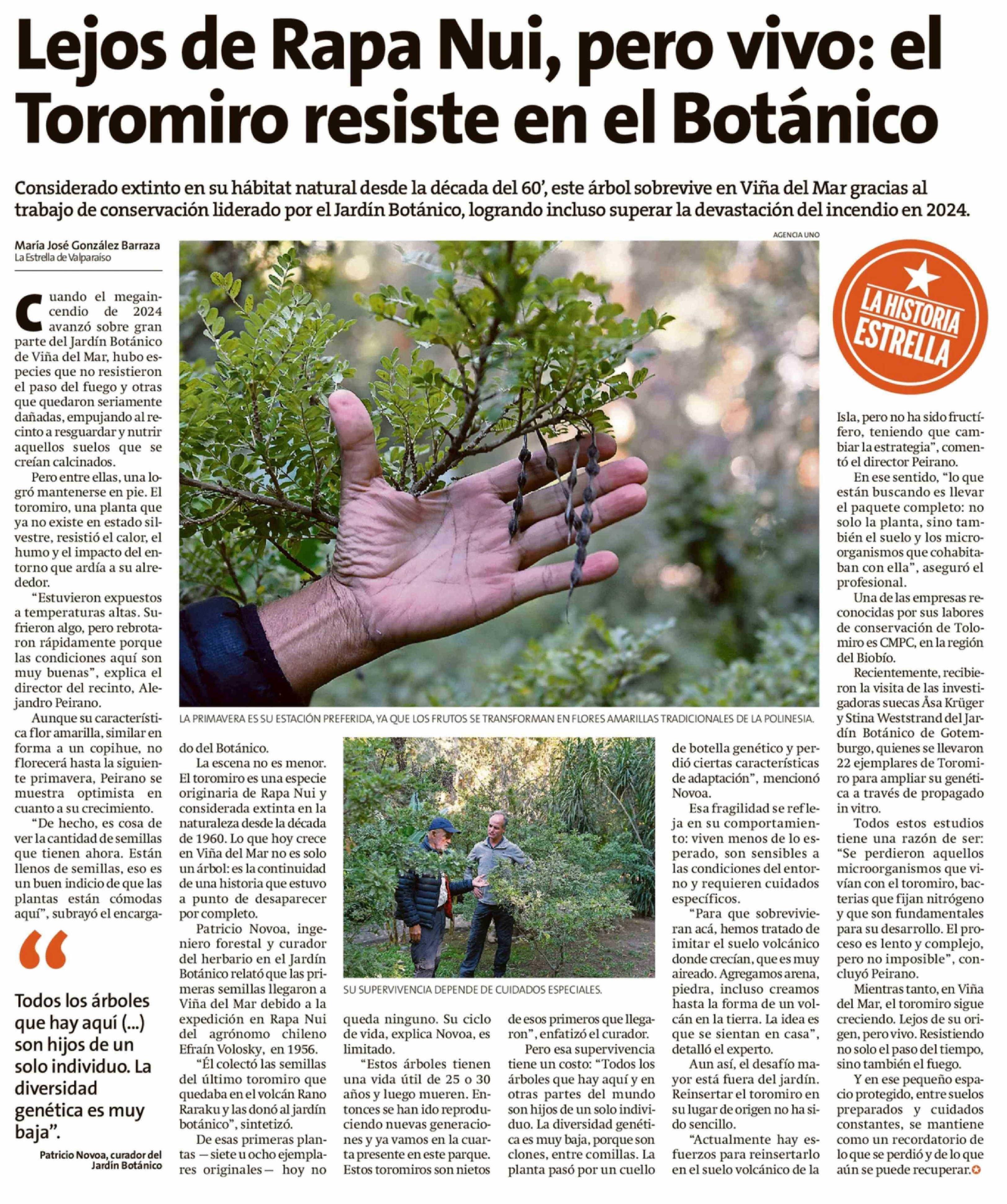 Lejos de Rapa Nui, pero vivo: el Toromiro resiste en el Botánico 24-03-2026 La Estrella de Valparaíso |