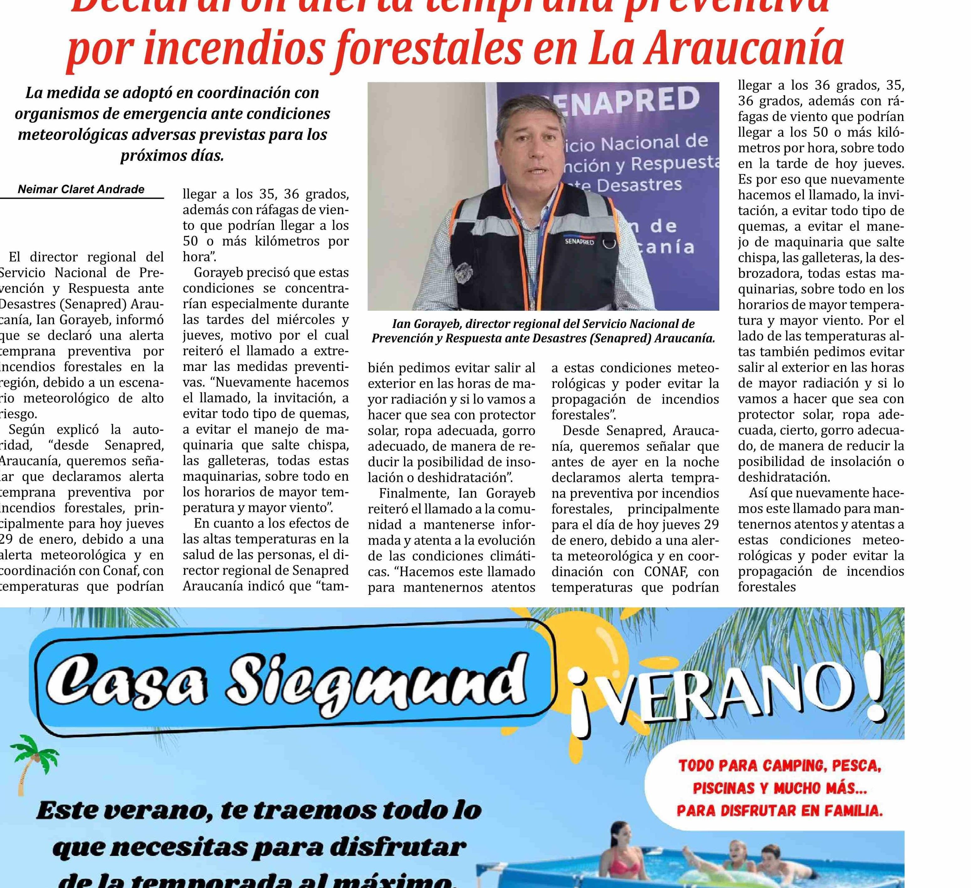 | Fecha: | 29-01-2026 | Sector: | Noticia general | Región: | Región de la Araucanía |