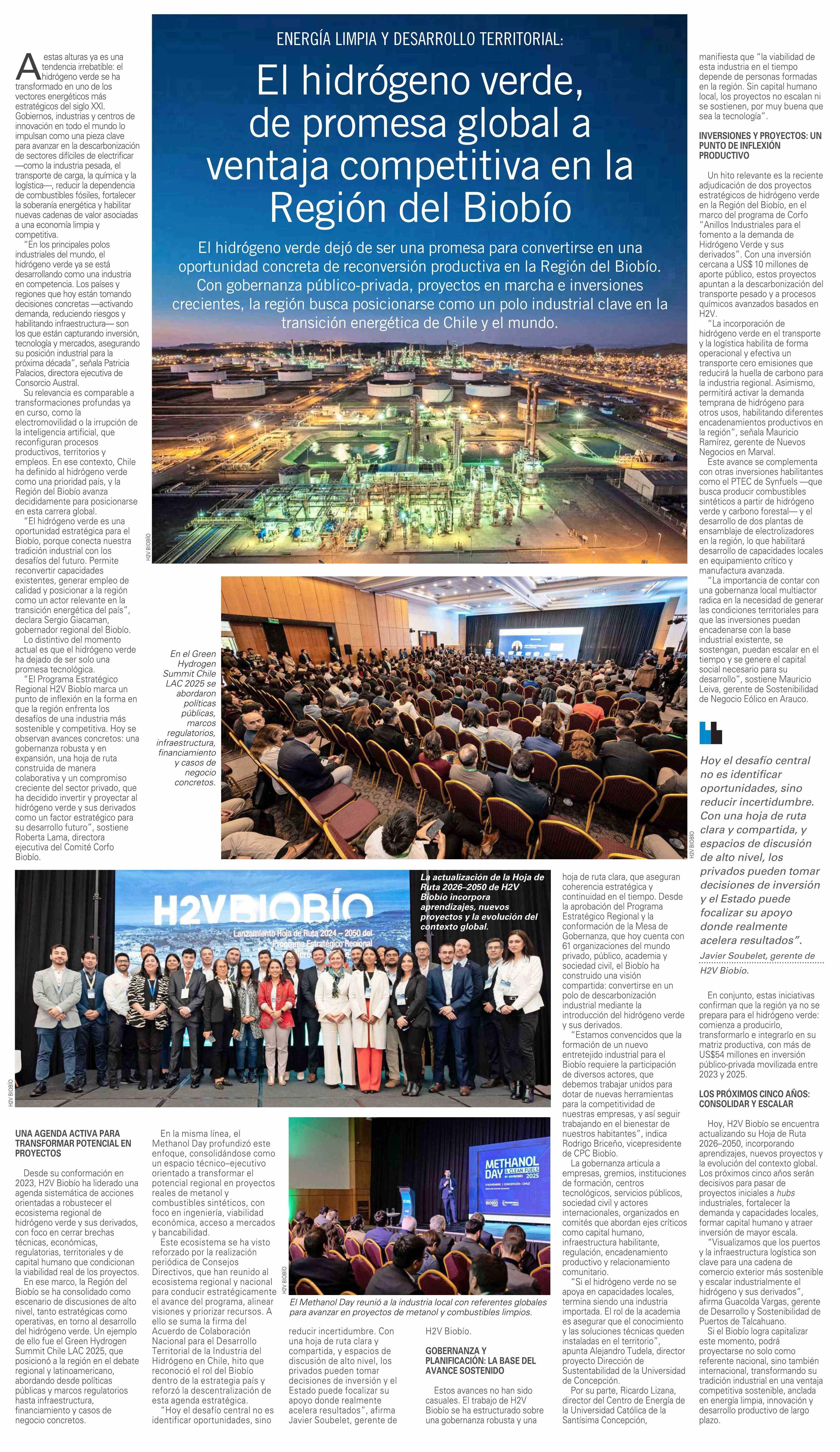 El hidrógeno verde, de promesa global a ventaja competitiva en la Región del Biobío 19-01-2026 El Mercurio |