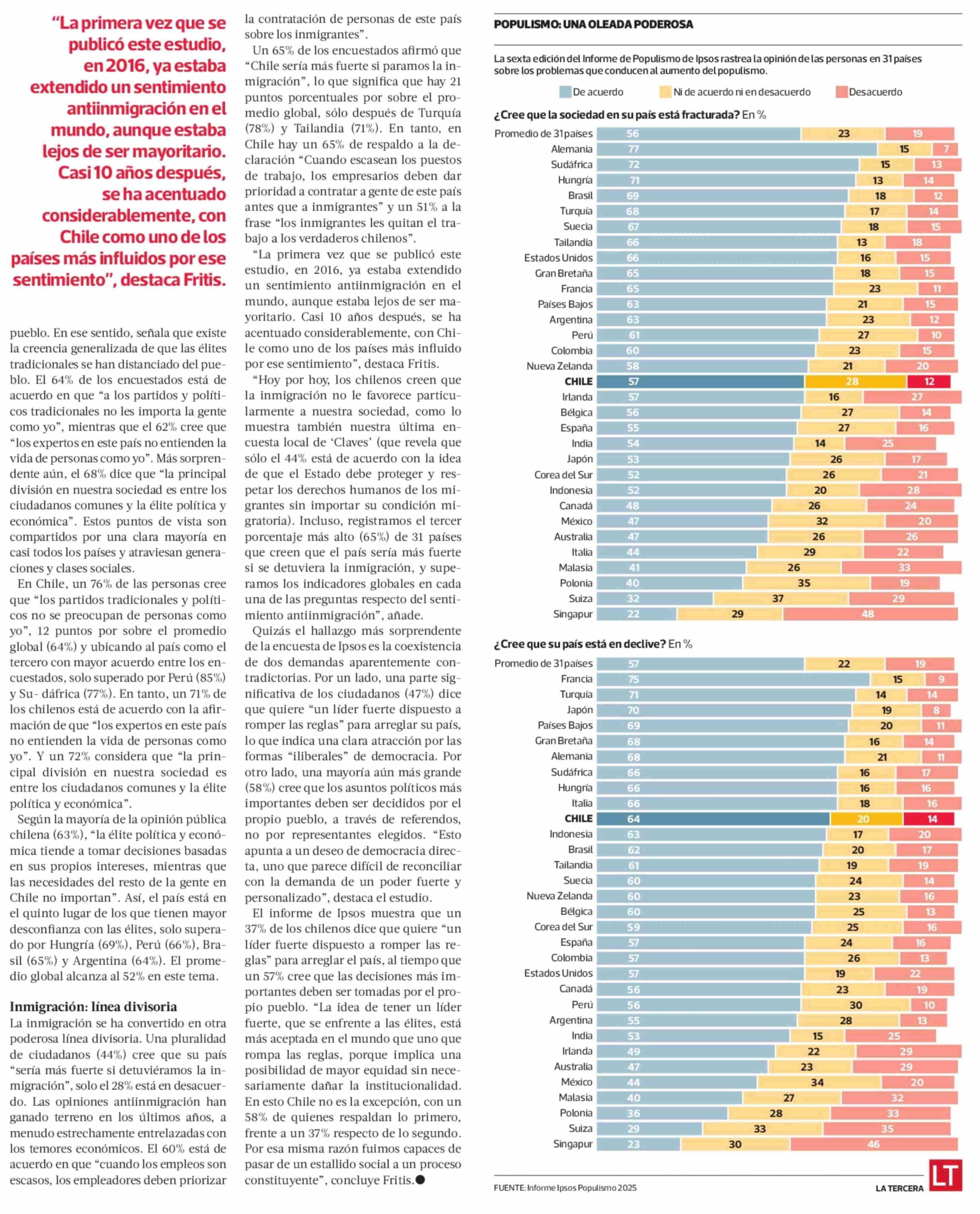 Sondeo global revela del país y estado de la sociedad chilenos con rumbo sombría mirada de 07-06-2025 La Tercera |