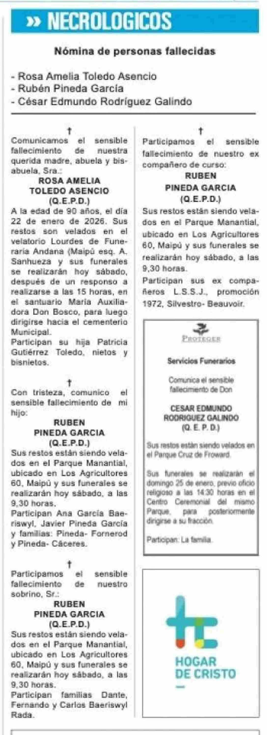 NECROLOGICOS 24-01-2026 La Prensa Austral |