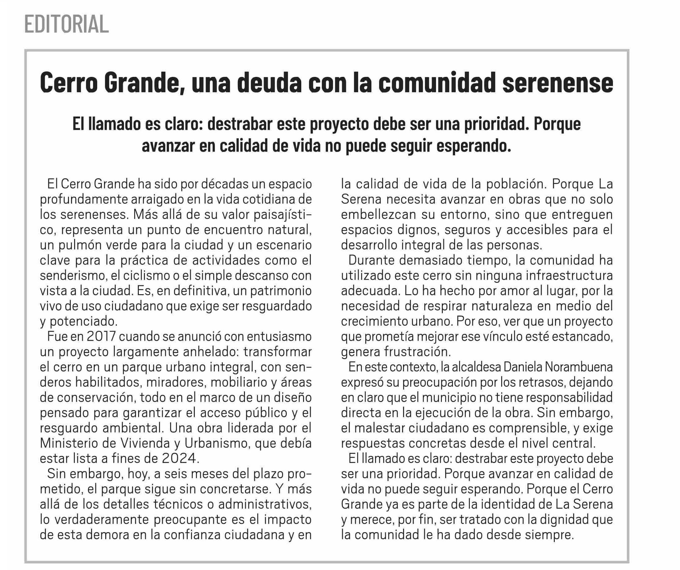 Cerro Grande, una deuda con la comunidad serenense 05-06-2025 El Día |