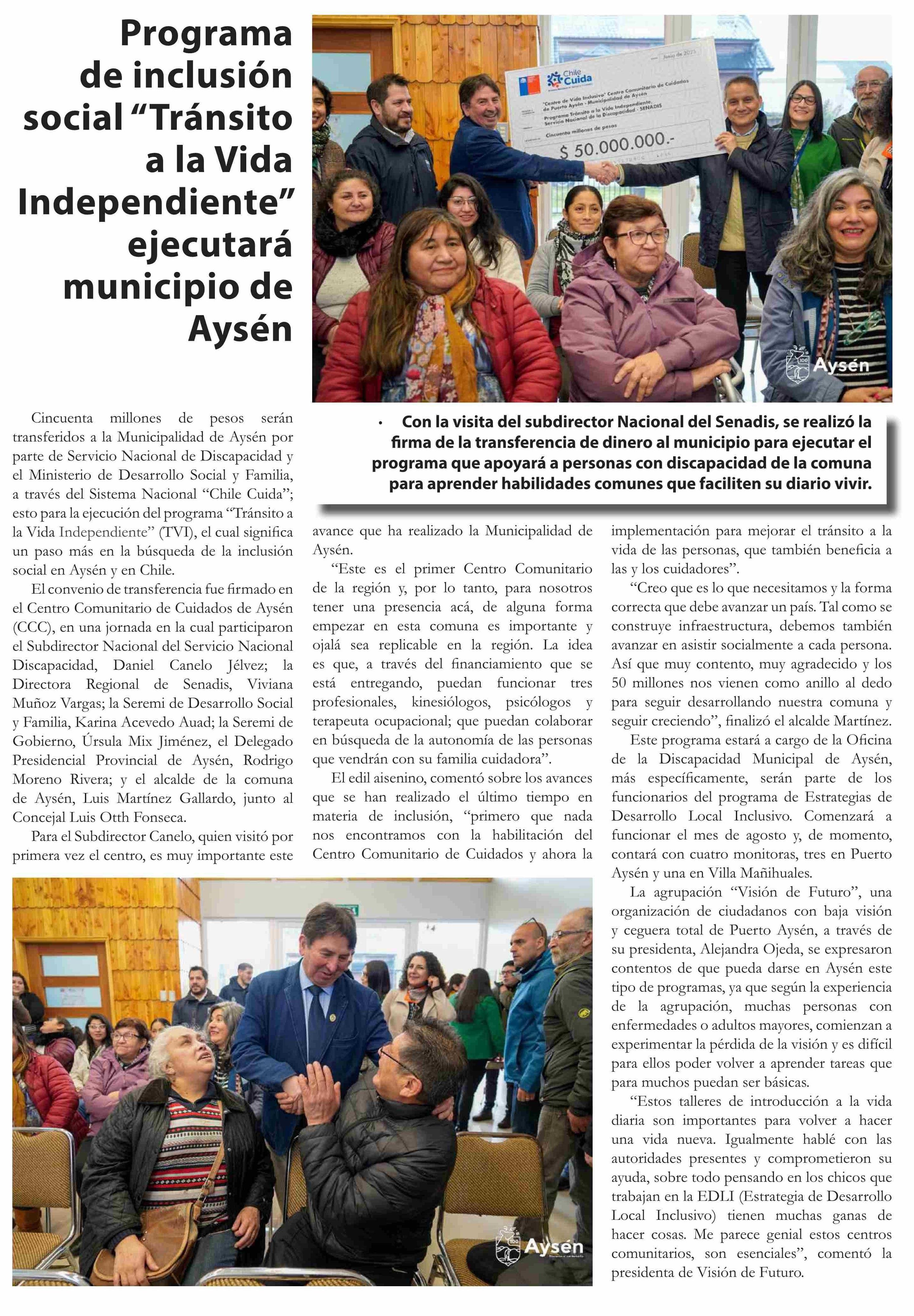 Título: Programa de inclusión social “Tránsito a la Vida Independiente” ejecutará municipio de Aysén