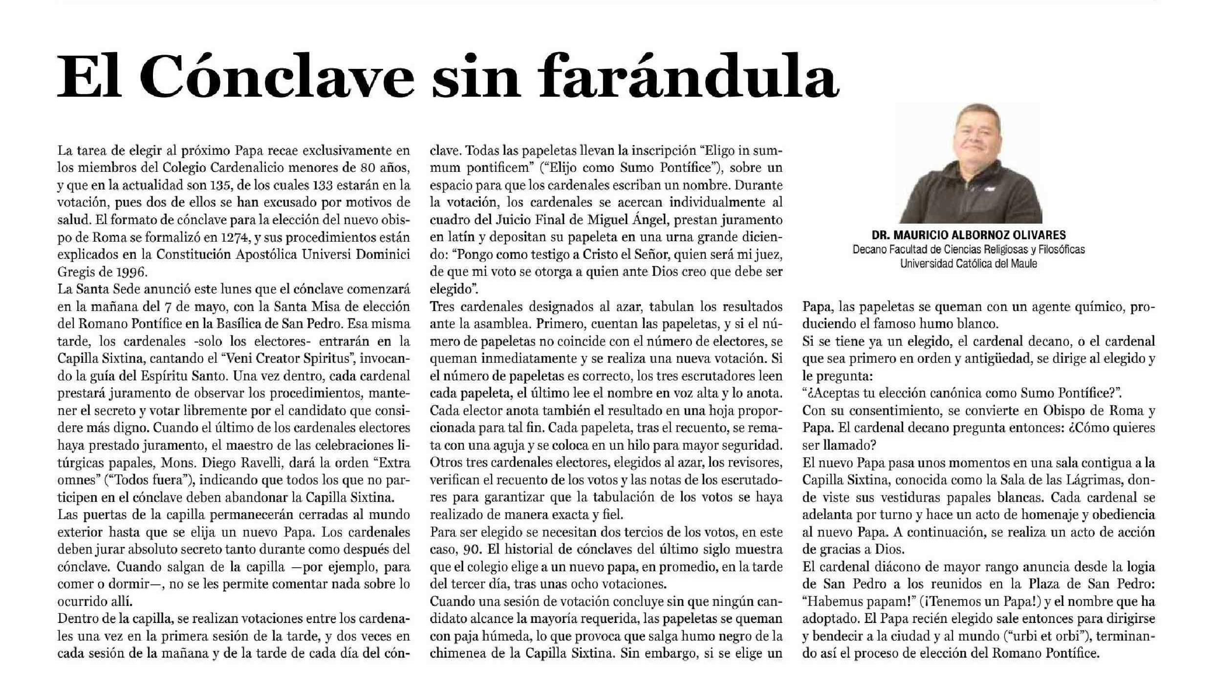 COLUMNAS DE OPINIÓN: El Cónclave sin farándula 06-05-2025 La Prensa de Curicó |