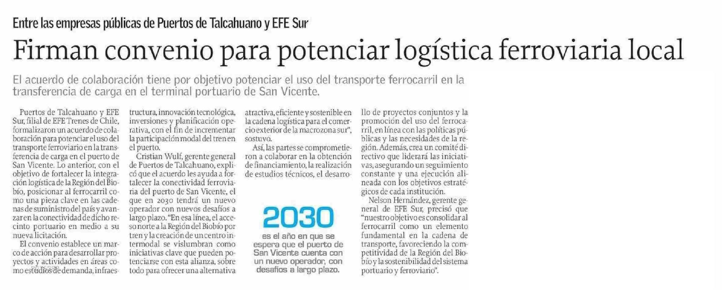 Firman convenio para potenciar logística ferroviaria local 05-06-2025 El Sur |