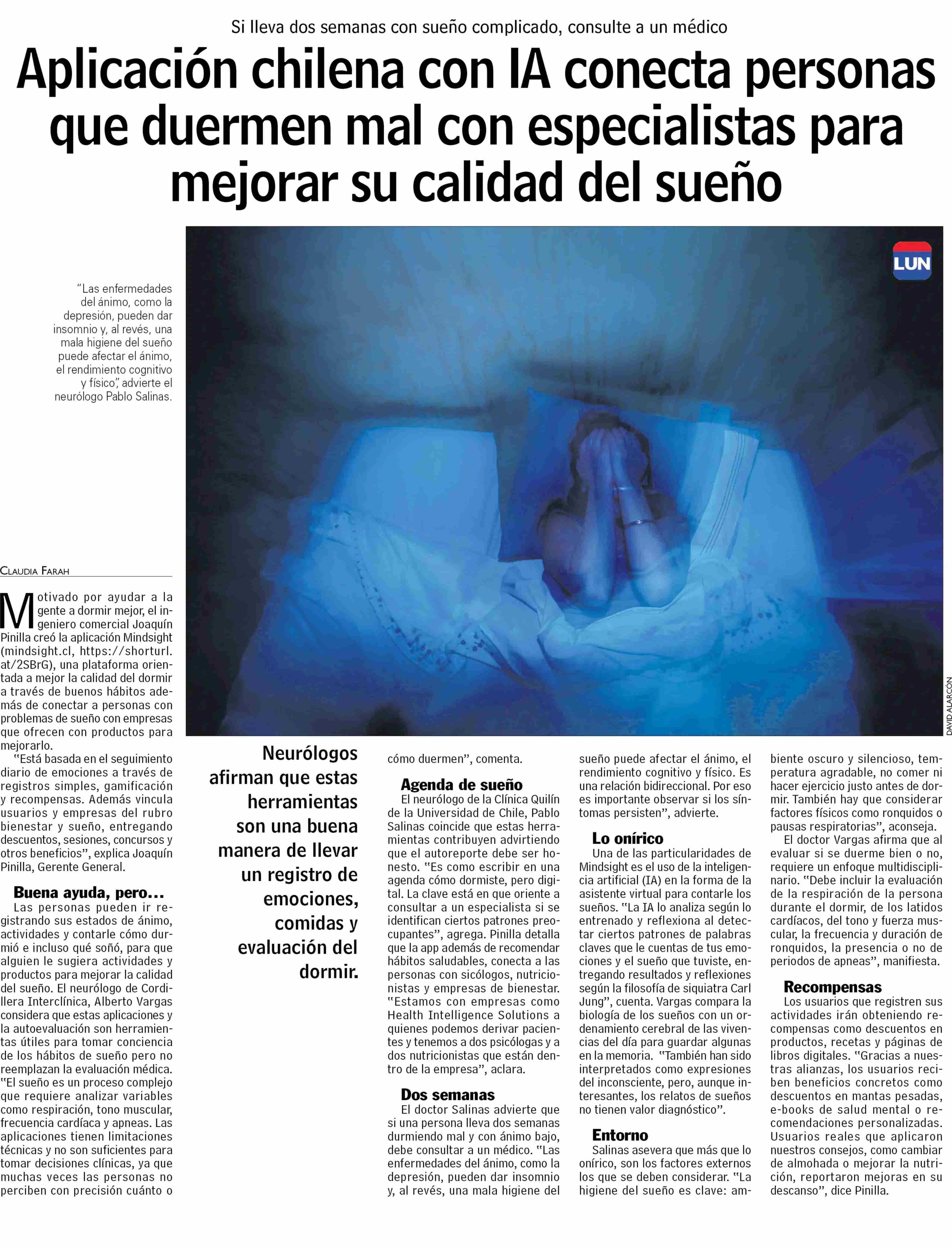 Aplicación chilena con lA conecta personas que duermen mal con especialistas para mejorar su calidad del sueño 22-05-2025 Las Últimas Noticias |